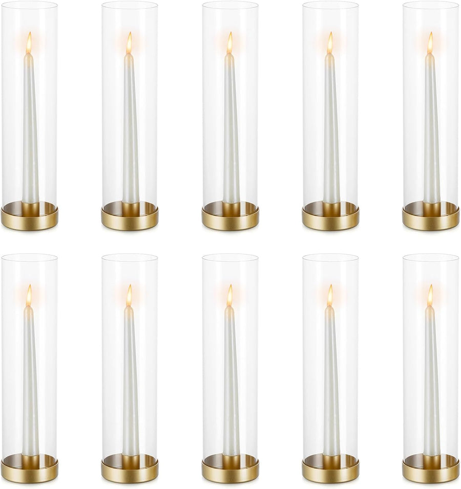 NUPTIO Kerzenständer Goldene Glaszylinder Metall- 10 Stücke Kegel Kerzenhalter Stabkerze Pack Kerzen