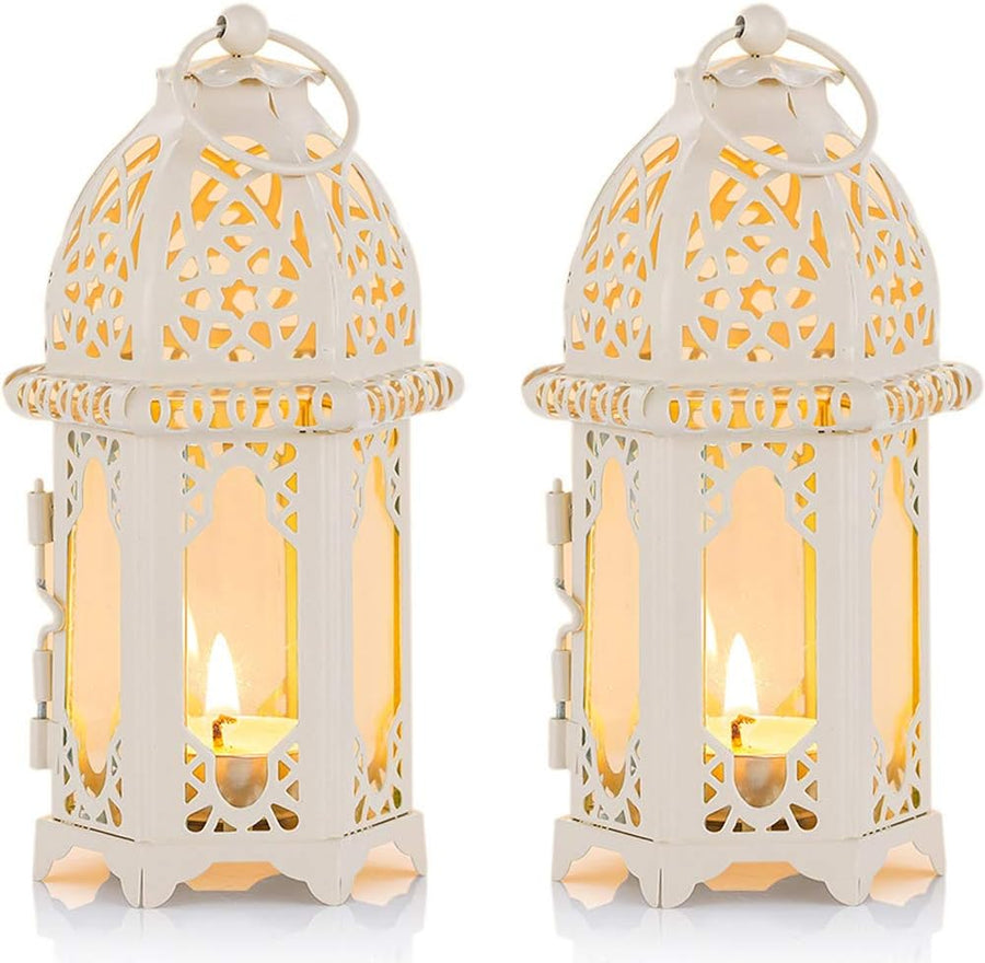 Nuptio Marokkanische Kerze Laterne Hängend Teelicht Kerzenhalter 2 Stück Metall & Glas Ramadan Lampe