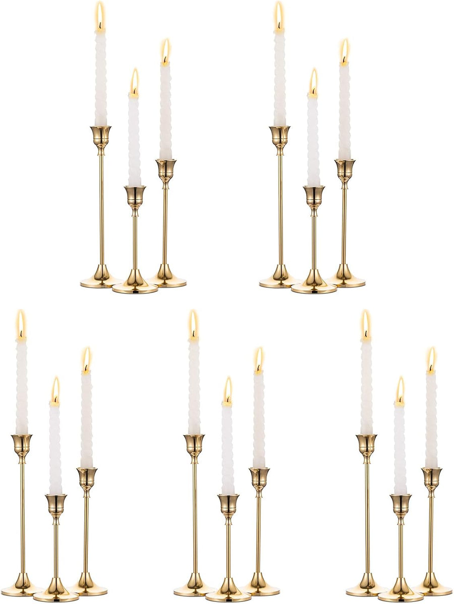 NUPTIO Satz von 5(15 Stück Messing Gold Metall Taper Kerzenhalter, Vintage Kerzen Ständer Herzstück
