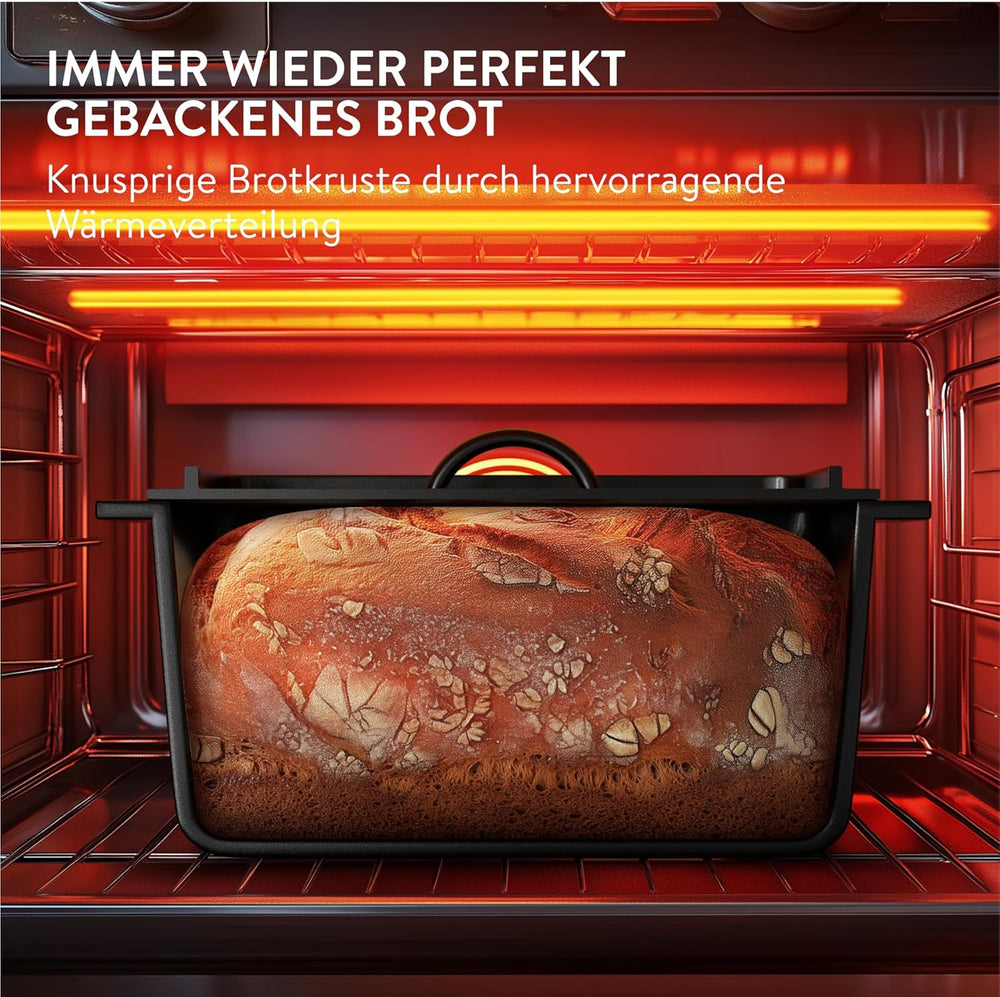 Navaris Gusseisen Brotbackform mit Deckel - 34cm - Vorgewürzt - Gleichmässige Wärmeverteilung für pe