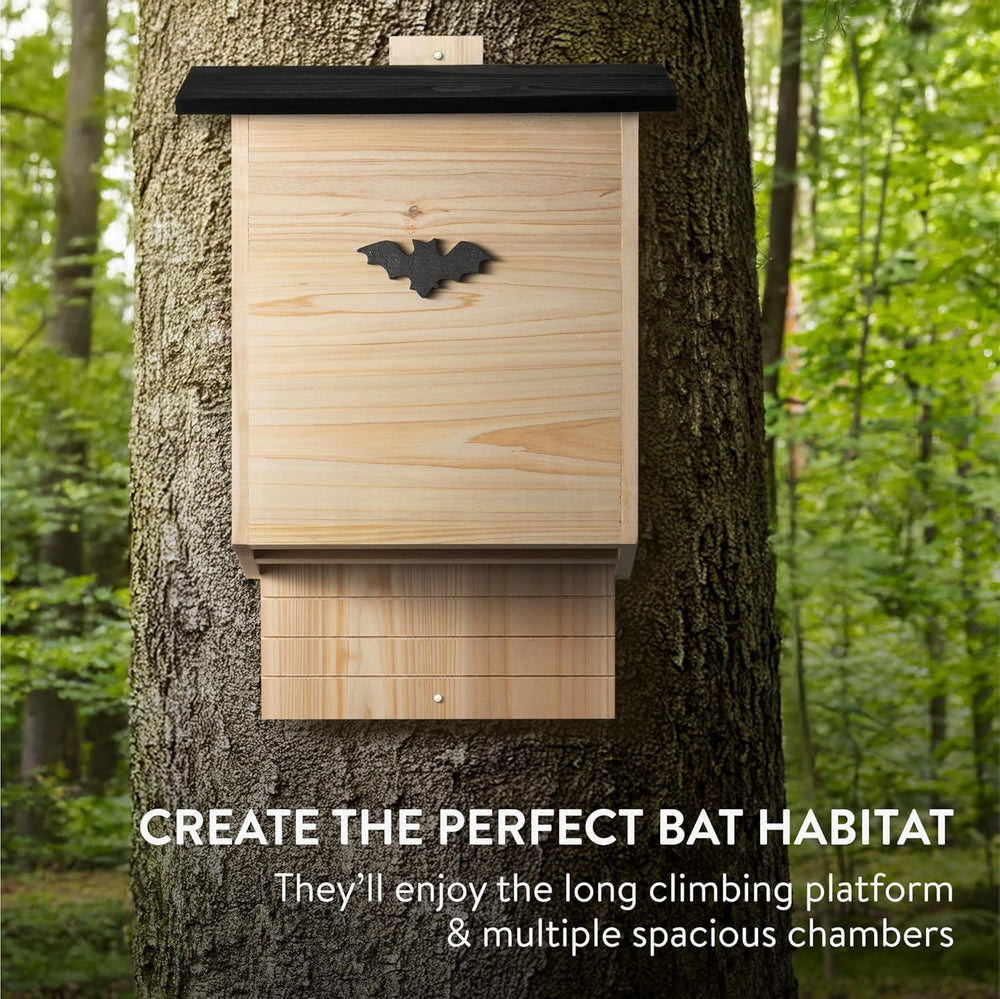Navaris Fledermauskasten Gross - Geräumig und grosszügig - Aus Massivholz - Schwarzes Dach - Flederm