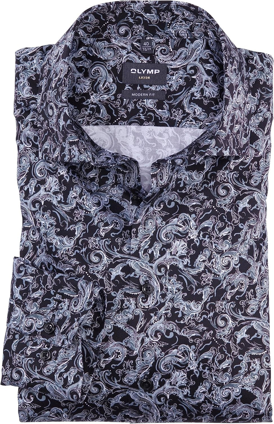 OLYMP Herren Businesshemd Langarm Luxor,Digitaldruck,modern fit,Global Kent 41 Schwarz 68, 41 Schwar