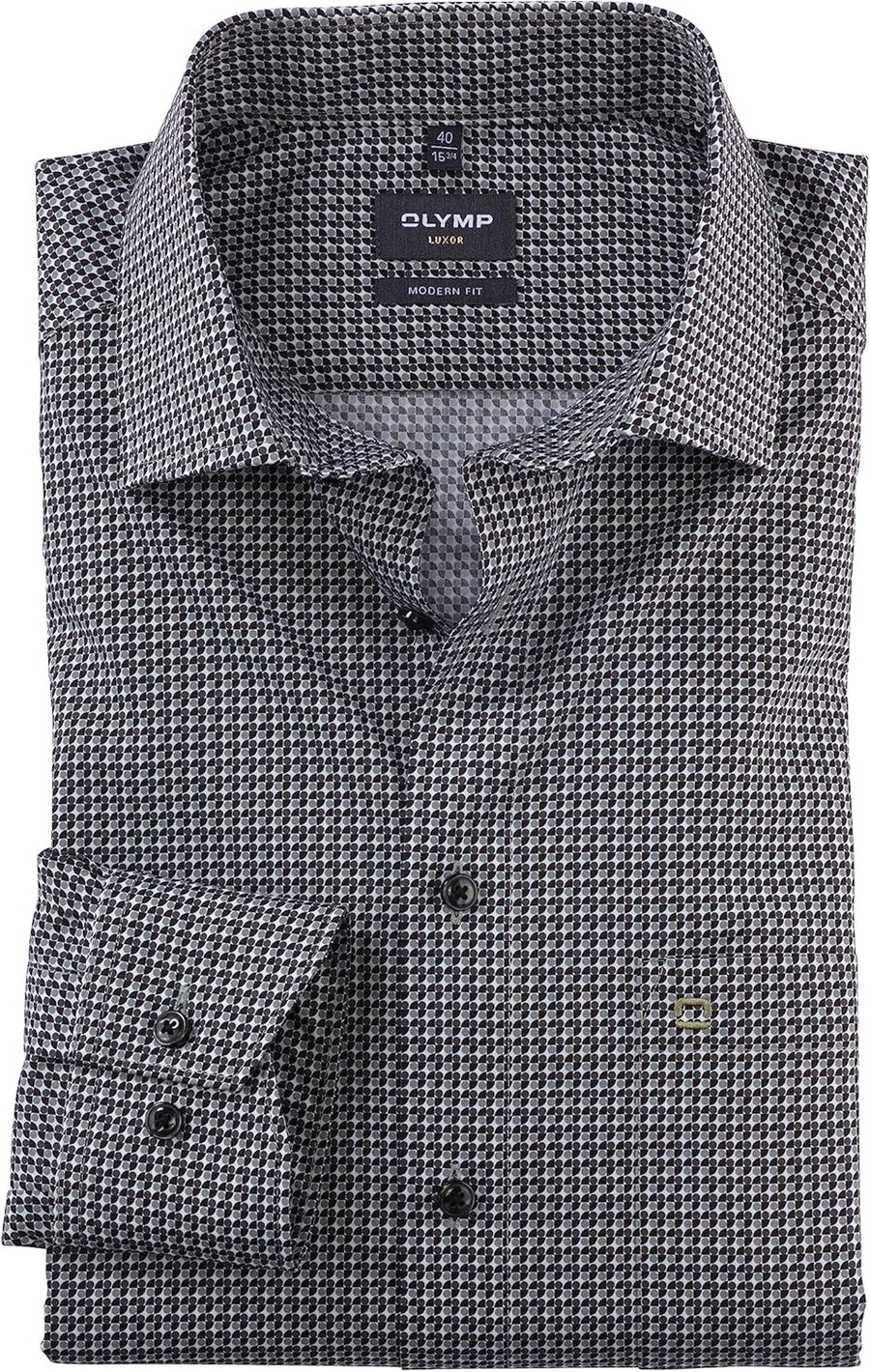 OLYMP Herren Businesshemd Langarm Luxor,Digitaldruck,modern fit,Global Kent 37 Oliv 47, 37 Oliv 47