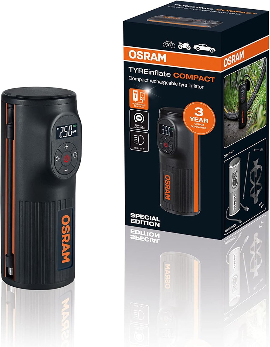 OSRAM TYREinflate COMPACT, Akku Luftpumpe, tragbarer elektrischer Mini Luftkompressor mit LED Licht,