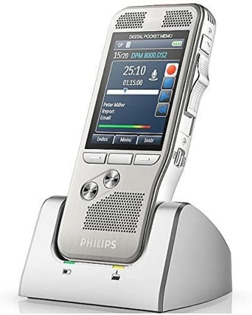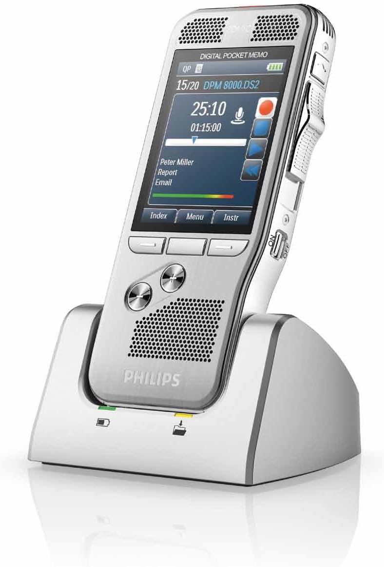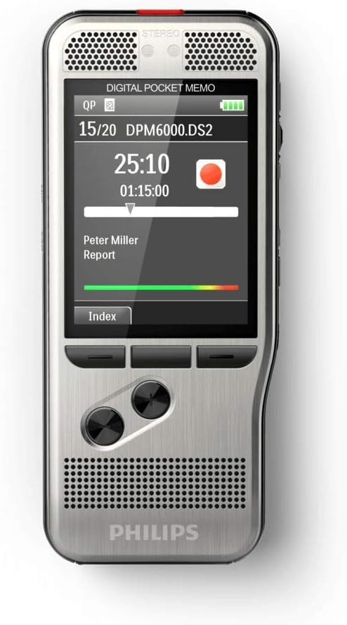 Philips DPM8200 Digitales Diktiergerät, Bedienung per Schiebeschalter, 3D-Mikrofon für ausgez. Stere