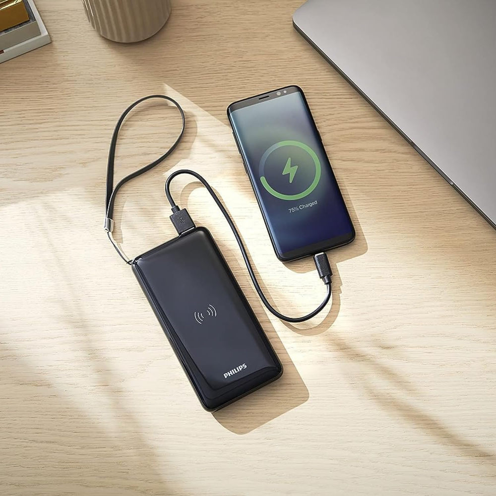 Philips DLP1011Q/00 - Power Bank mit kabelloser Qi-Ladefuntion - 1X Typ-C und 2X USB-A Ausgänge - LE