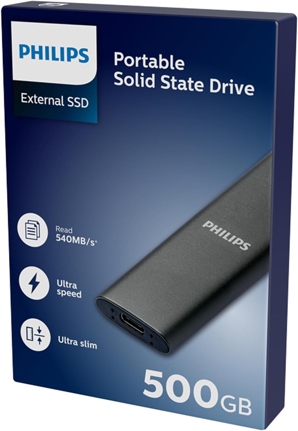 Philips Draagbaar Externe SSD 500 GB- Ultra Slanke SATA Ultra Speed USB- C - USB, snelheid tot 540 M
