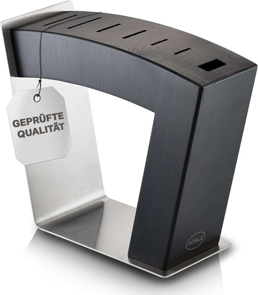 RÖSLE Messerblock MoveX schwarz, Hochwertiger Design-Messerblock aus Edelstahl und Eschenholz, sicht