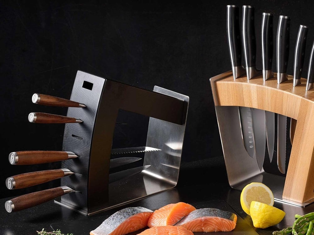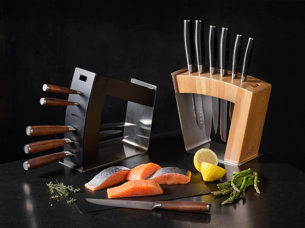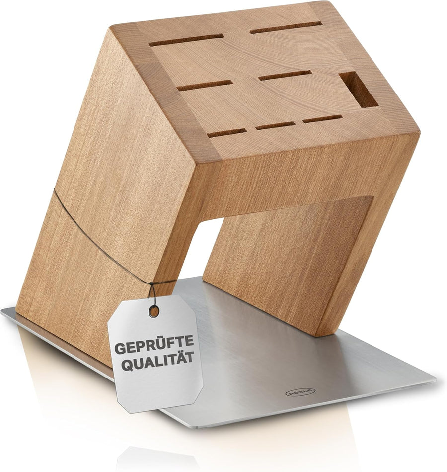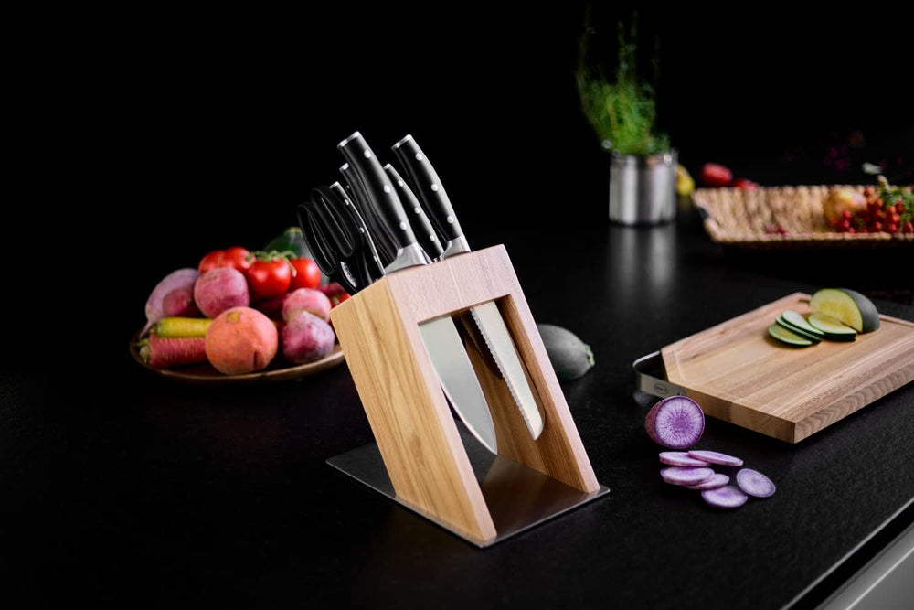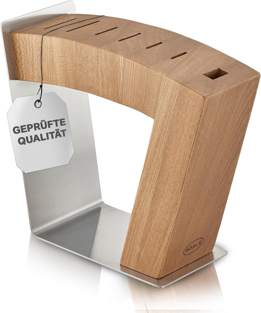 RÖSLE Messerblock MoveX, Hochwertiger Design-Messerblock aus Edelstahl und Ulmenholz, sichtbare Klin