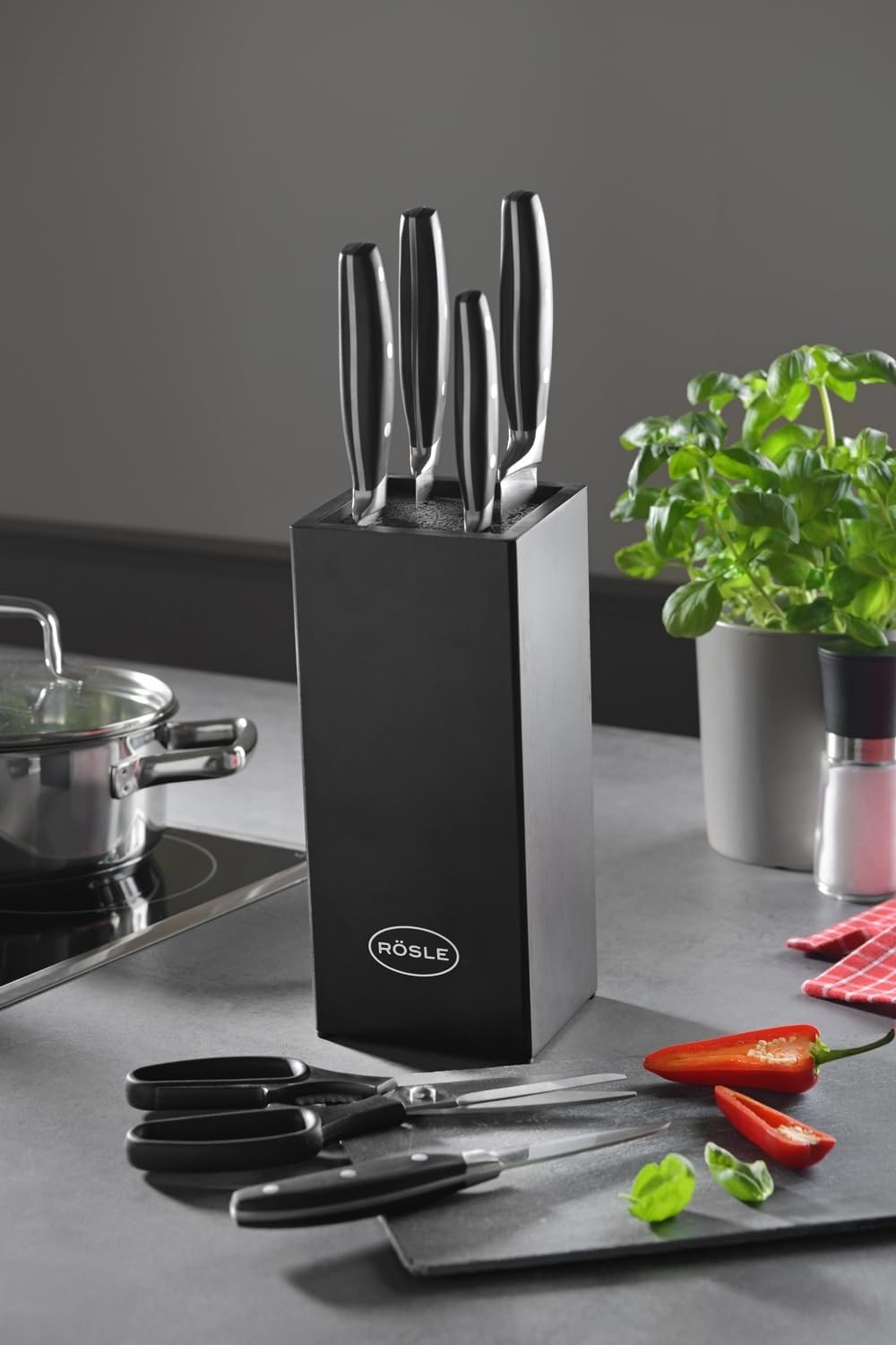 RÖSLE Messerblock-Set 7-teilig - Schwarz - Kunststoff - Spezialklingenstahl - Bambus