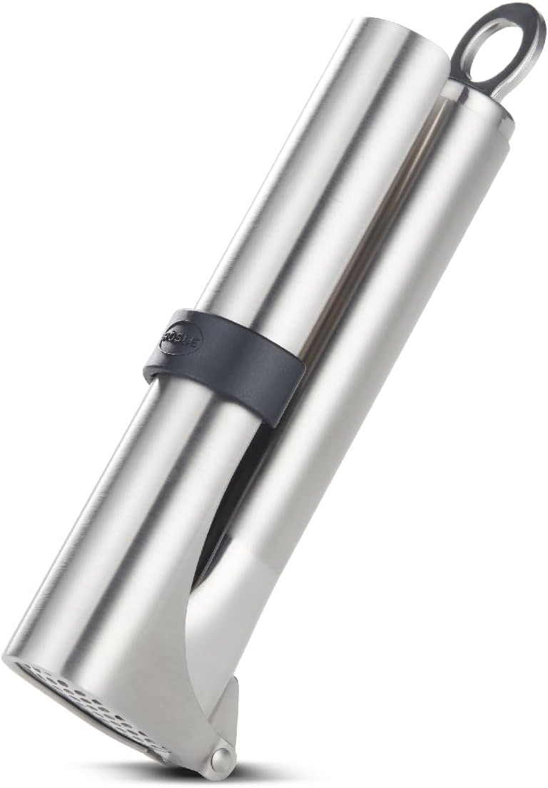 RÖSLE Knoblauchpresse, Presse in Profi-Qualität für Ingwer und Knoblauch, mit klappbarem Sieb, Edels