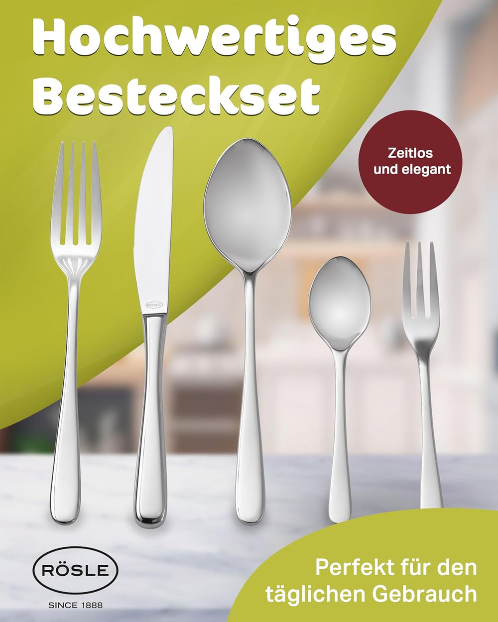 RÖSLE PASSION Besteck-Set 60-teilig, Hochwertiges Essbesteckset für 12 Personen aus Edelstahl 18/10,