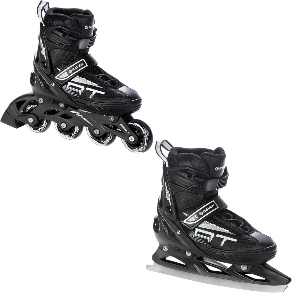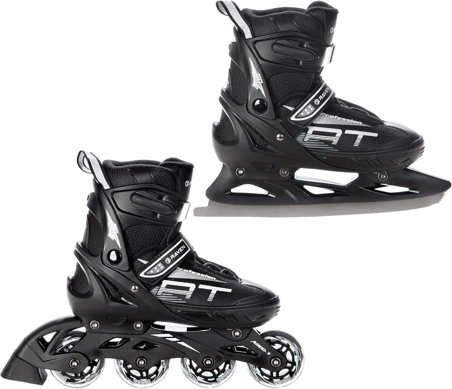 RAVEN Profession 2in1 Schlittschuhe Inlineskates Inliner für Kinder und Erwachsene verstellbar, Blac