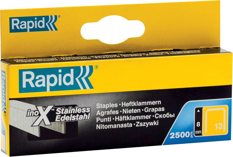 Rapid Tackerklammern Edelstahl Typ 13, 8mm Klammern V2A, 2.500 Stk., Feindrahtklammern für Holz und