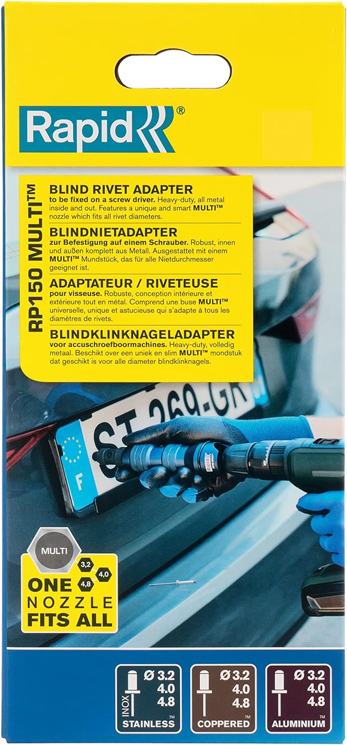 Rapid Nietzange RP150 Multi, Aufsatz für Akkuschrauber oder Bohrmaschine, Blindnietzange Adapter mit