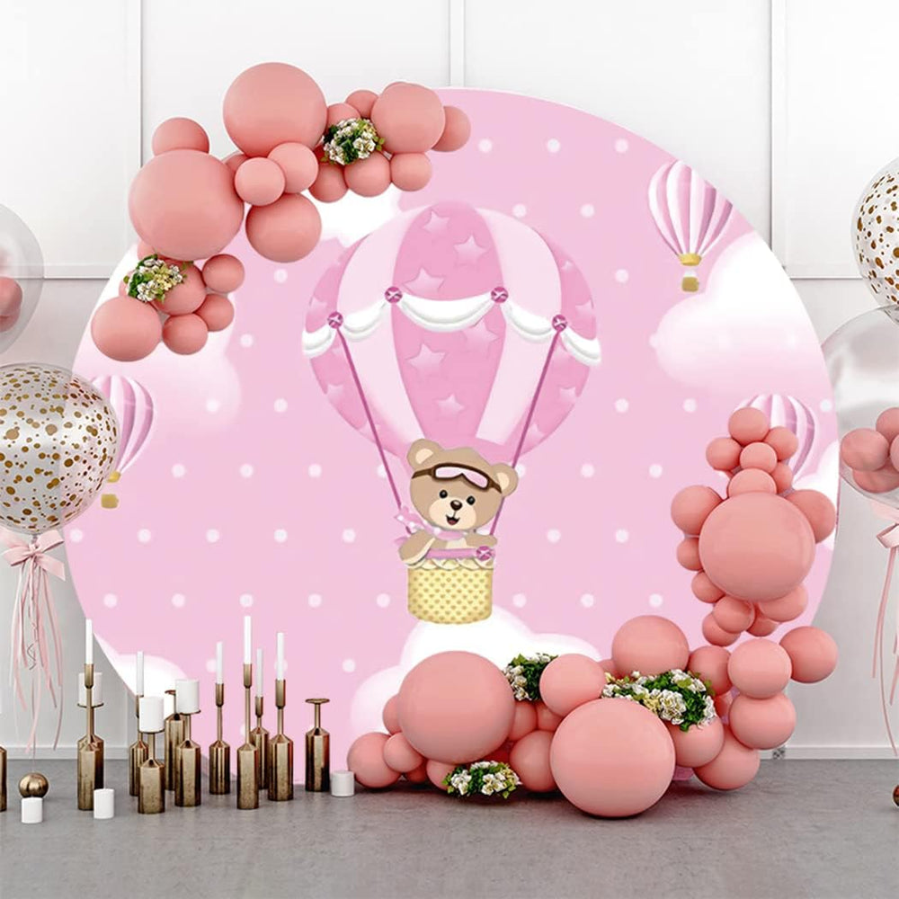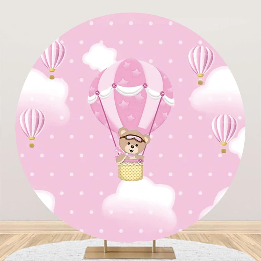 Renaiss 2.3m Heissluftballon Bär Runder Hintergrund Rosa Himmel Wolken Baby Dusche Polyester Fotogra