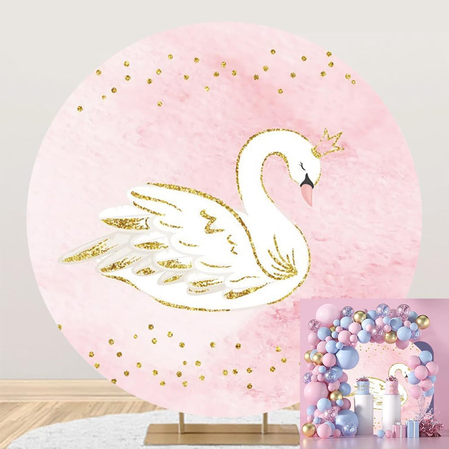 Renaiss 2.2m Schwan Runde Kulisse Floral Rosa Gold Polyester Fotografie Hintergrund Baby Dusche Mädc