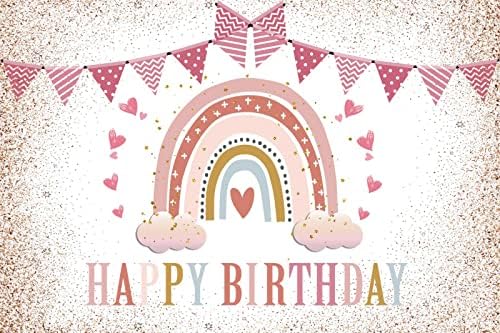 Renaiss 2.2x1.5m Regenbogen Happy Birthday Hintergrund Wolke Rosa Glitzer Dekoration Fotografie Hint