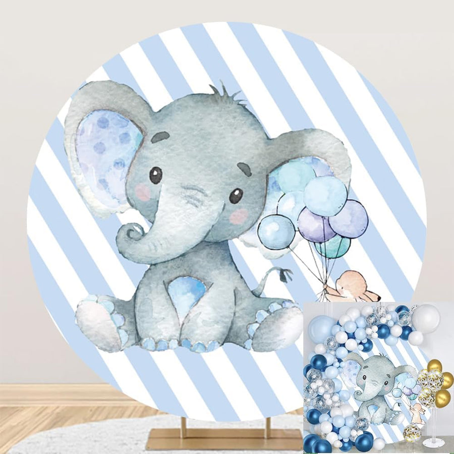 Renaiss 2.3m Elefant Thema Runde Kulisse Baby Dusche Kreis Bogen Hintergrund für Jungen Kinder Gebur
