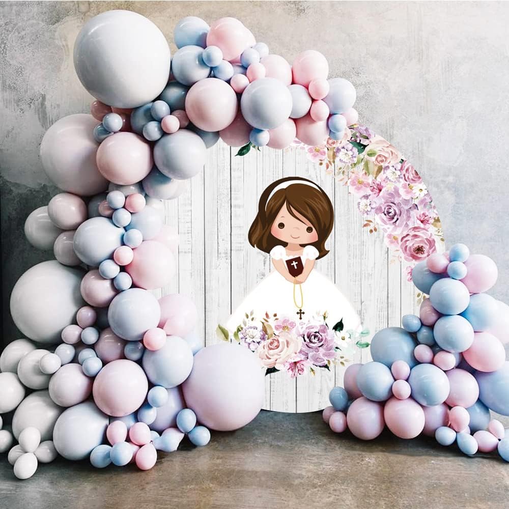 Renaiss 2.2x2.2m Meine erste Kommunion Runder Hintergrund für Mädchen Rustikales Holzbrett Blume Fot