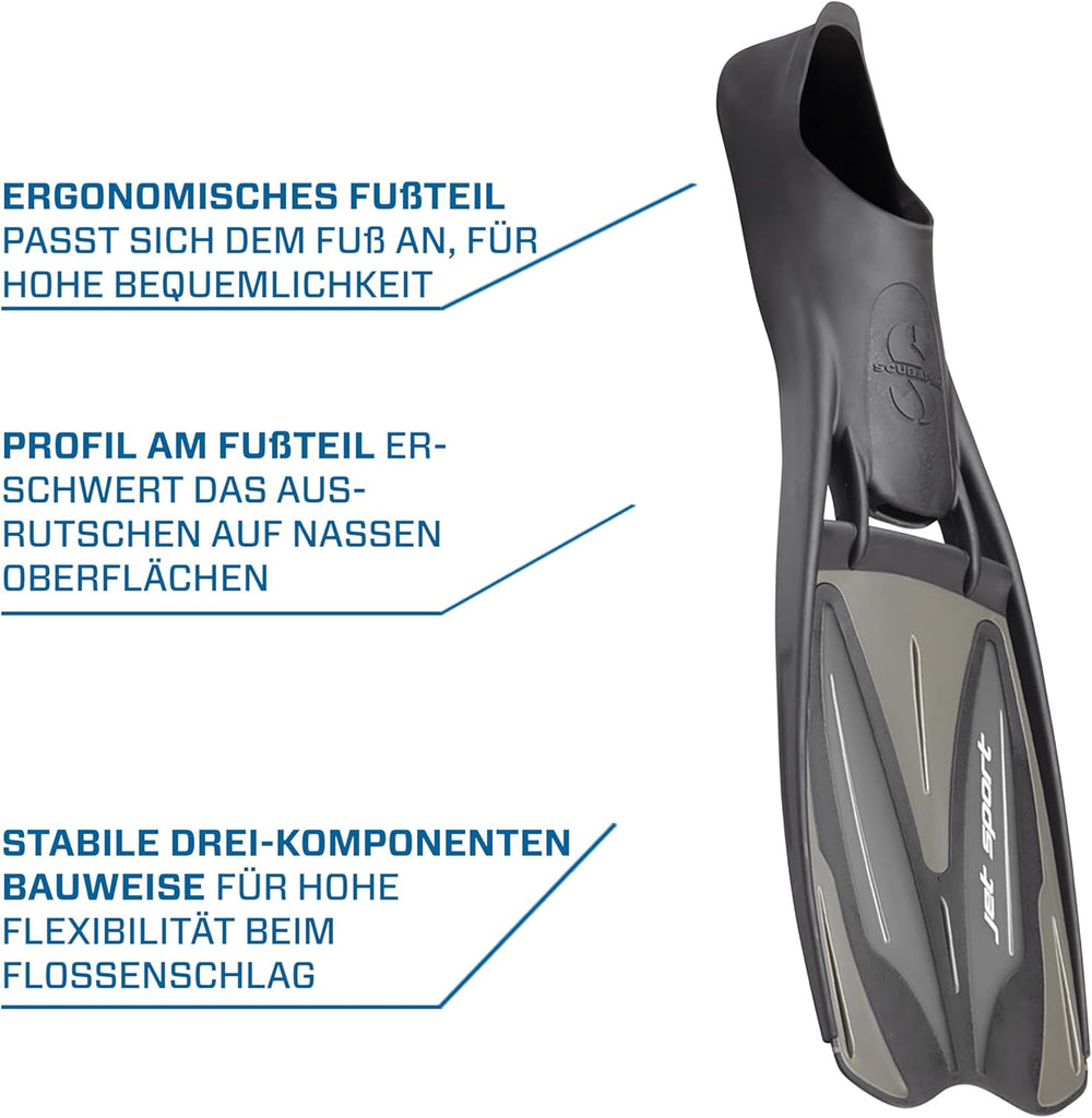 SCUBAPRO Jet Sport Fin Flossen 11/12 schwarz / grau, 11/12 schwarz / grau