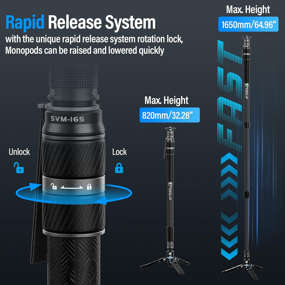 SIRUI SVM-165 Einbeinstativ Kohlefaser Kamera, 165cm Carbon monopod Rapid System Einstufige Höhenver