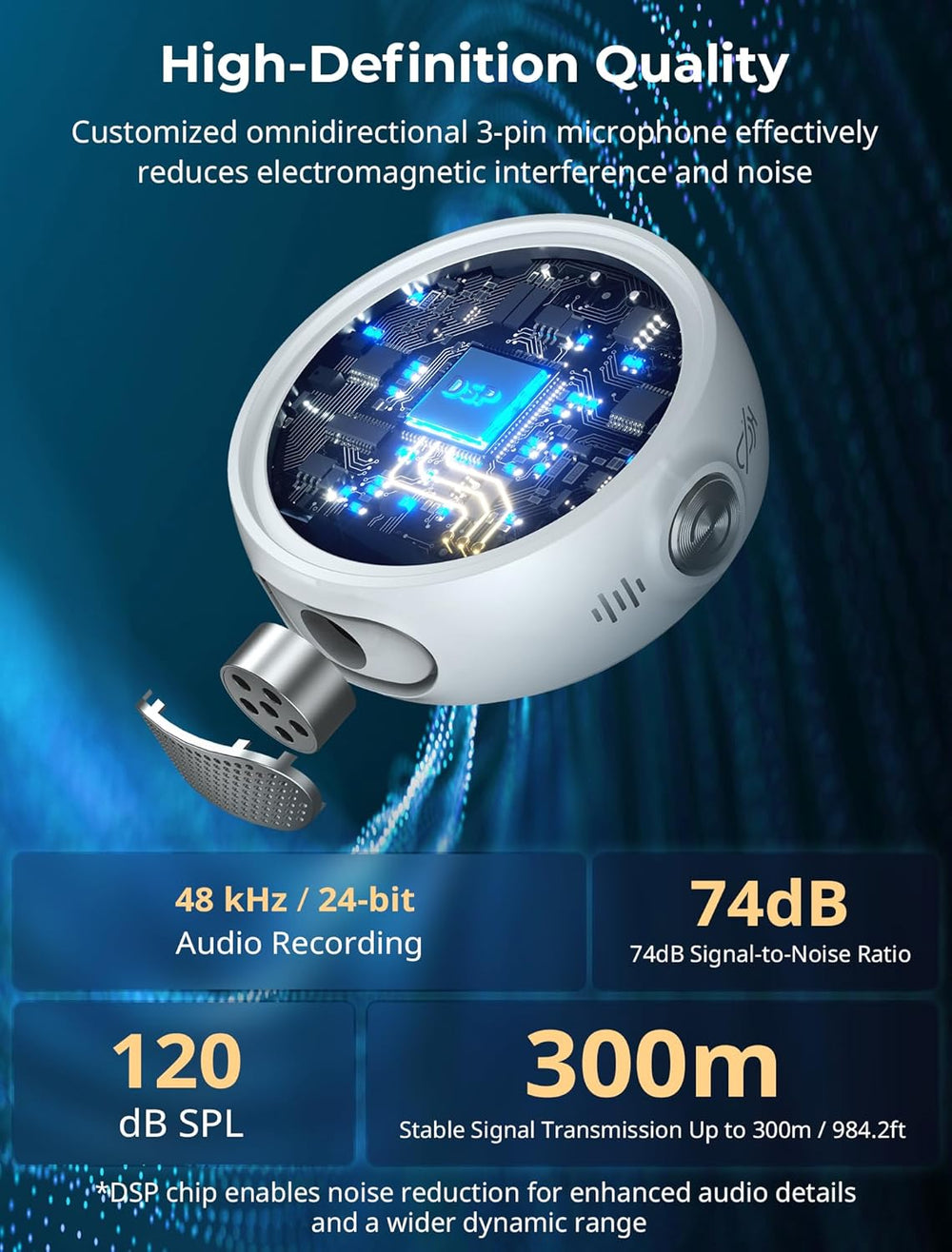 SMALLRIG S60 Kabellos Lavalier Mikrofon mit USB C für iPhone, Android, Mini-Mikrofon mit 44H Akkulau