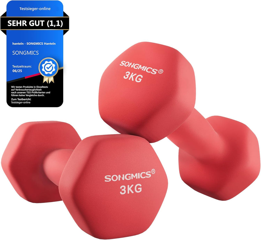SONGMICS Hanteln, 2er Set, Hantelset, Kurzhanteln, Hexagon, Neopren-Beschichtung, Krafttraining, Wor