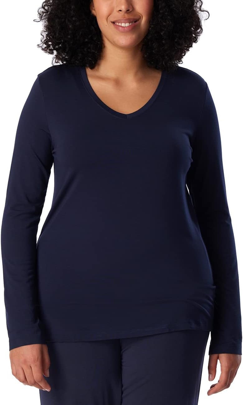 Schiesser Damen Schlafshirt langarm Modal - Mix + Relax 46 Grosse Grössen Blau_175477, 46 Grosse Grö