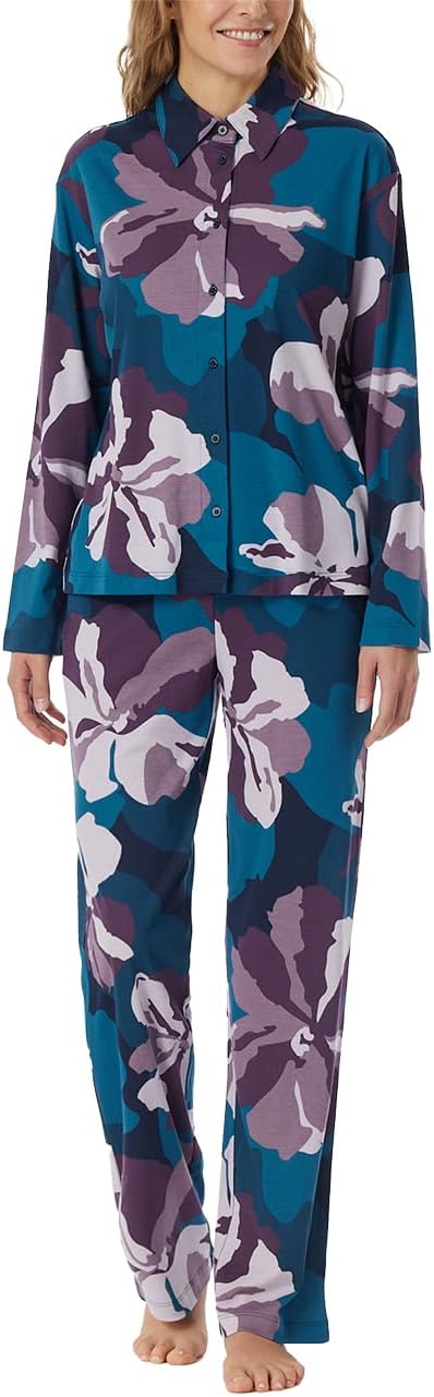 Schiesser Damen Schlafanzug lang Baumwolle - Nightwear 36 Malve_181986, 36 Malve_181986