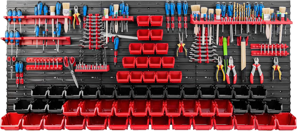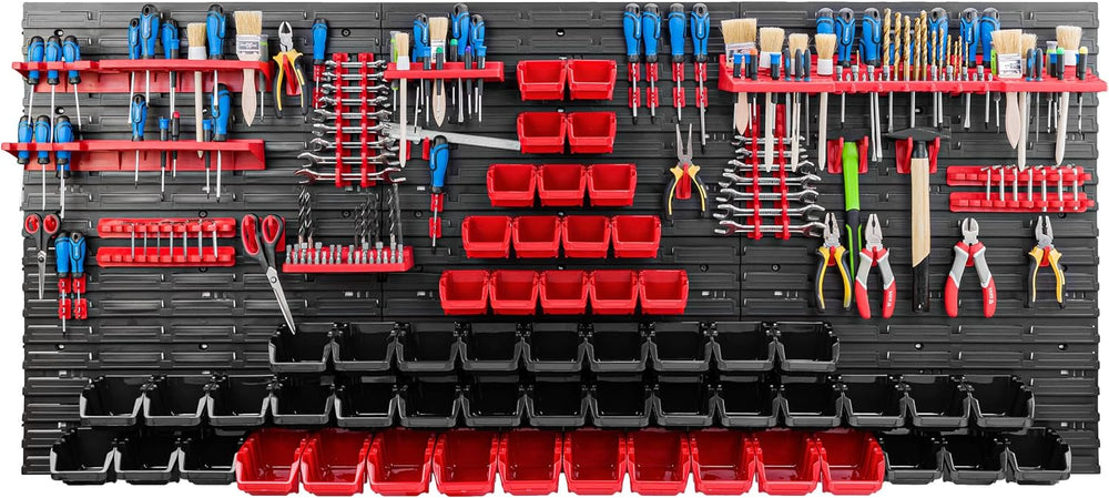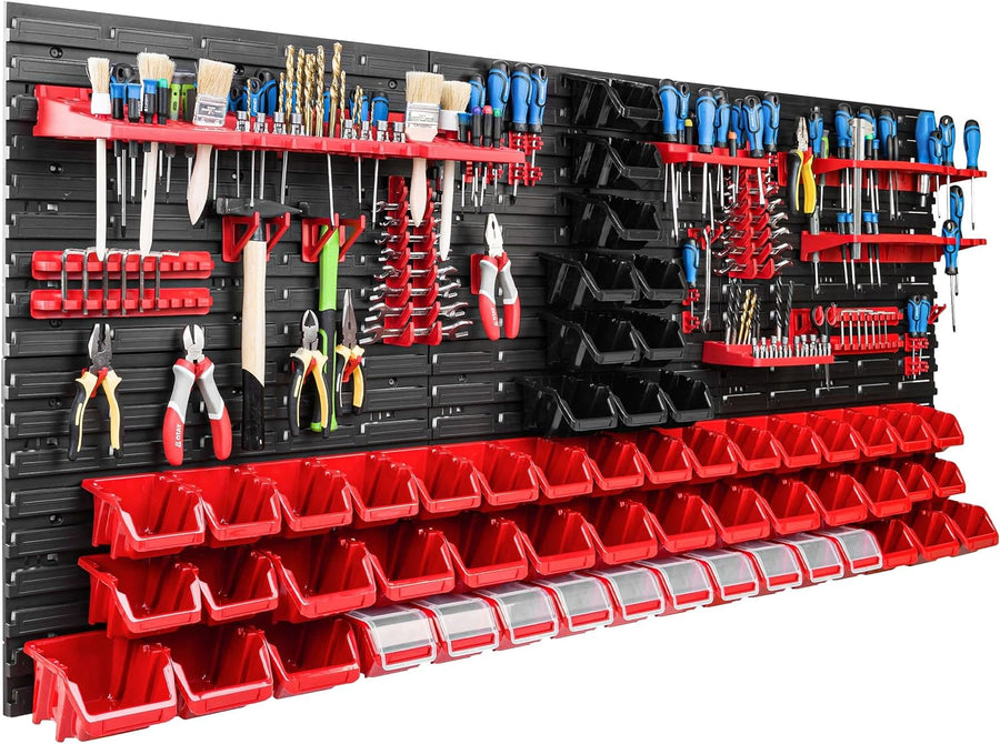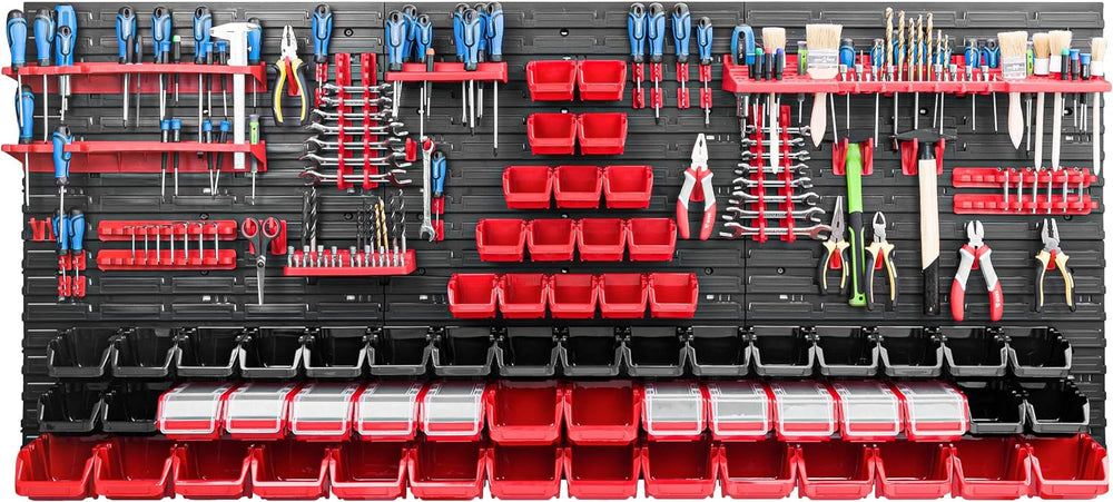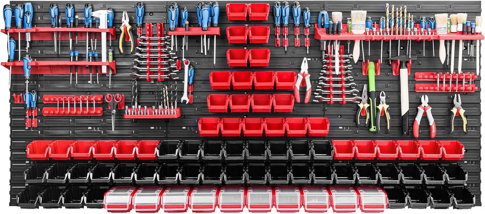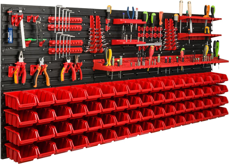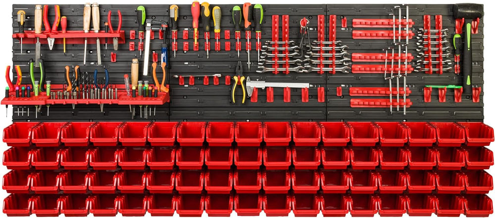 Lagersystem Werkstattregal | 172 x 78 cm | 61 stck. Box | Wandregal mit Werkzeughalterungen und Stap