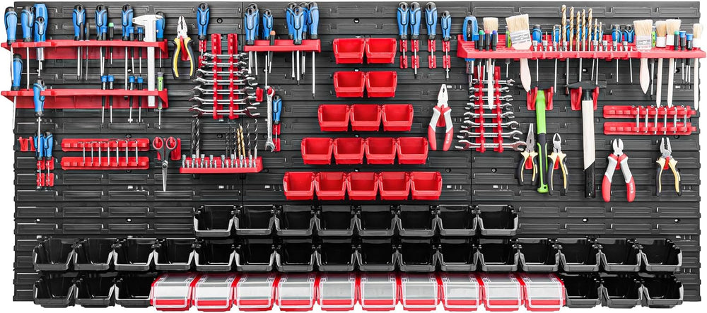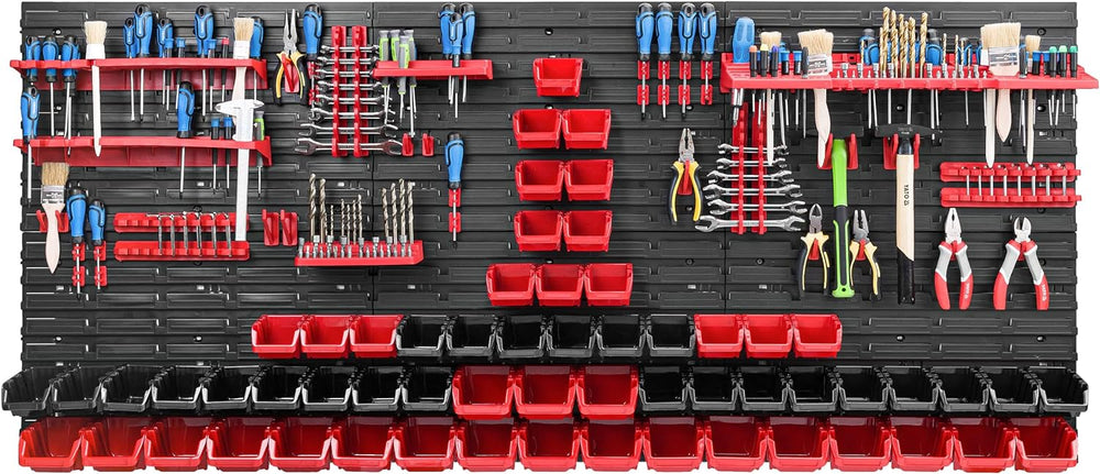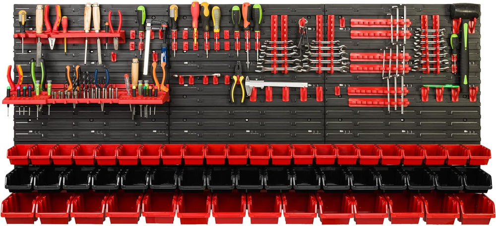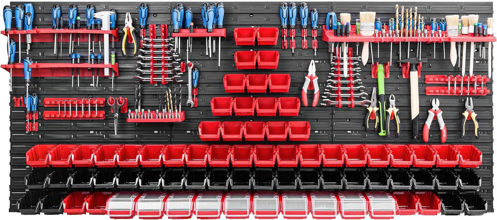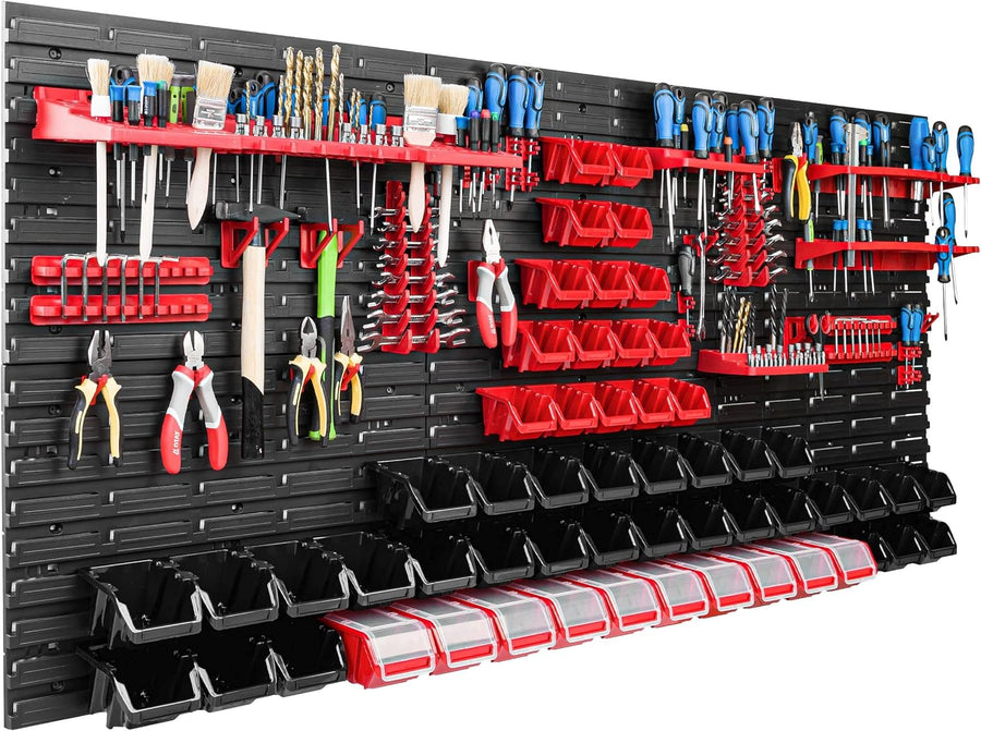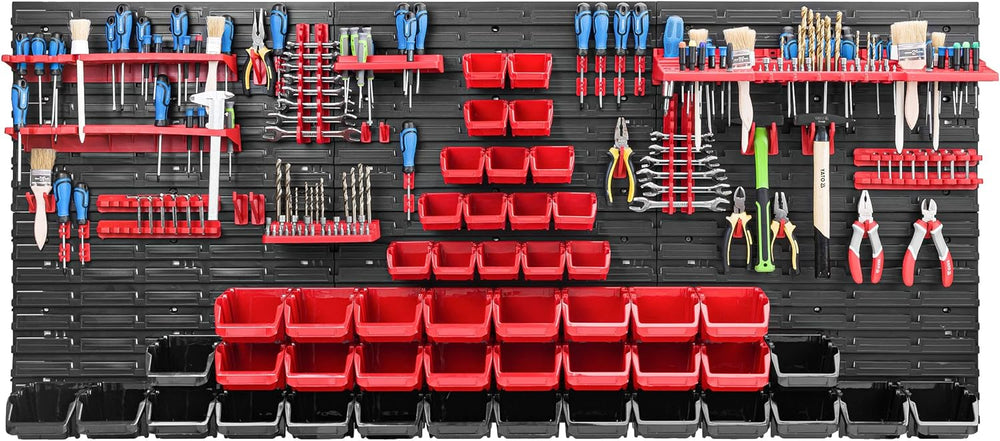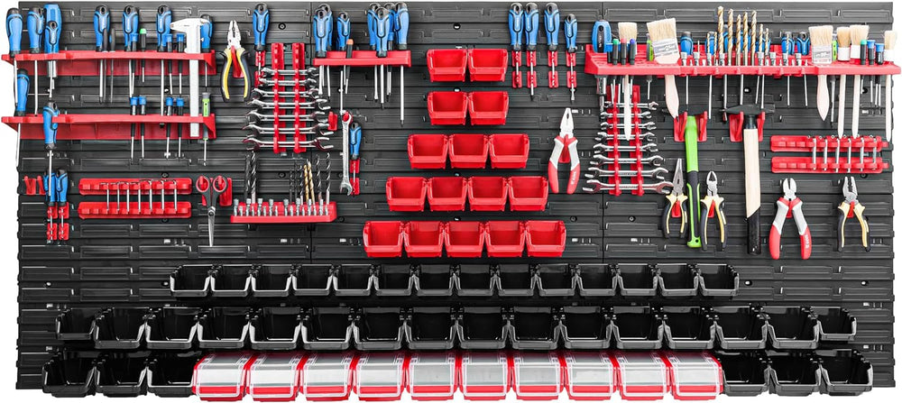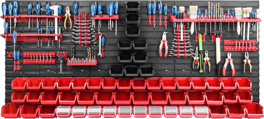 Lagersystem Werkstattregal | 172 x 78 cm | 61 stck. Box | Wandregal mit Werkzeughalterungen und Stap
