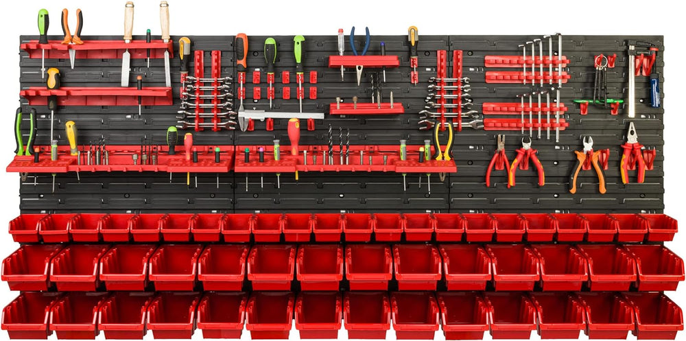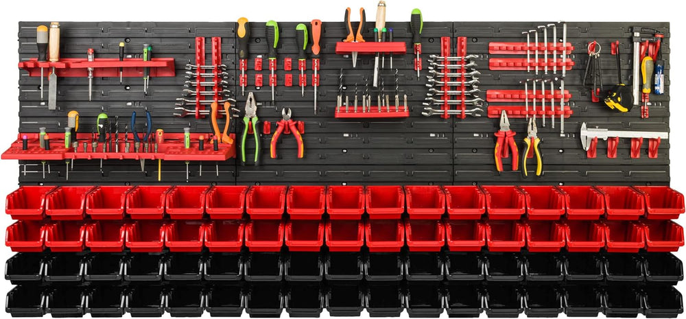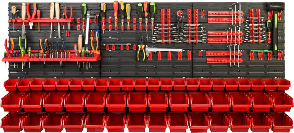 Lagersystem Werkstattregal | 172 x 78 cm | 48 stck. Box | Wandregal mit Werkzeughalterungen und Stap