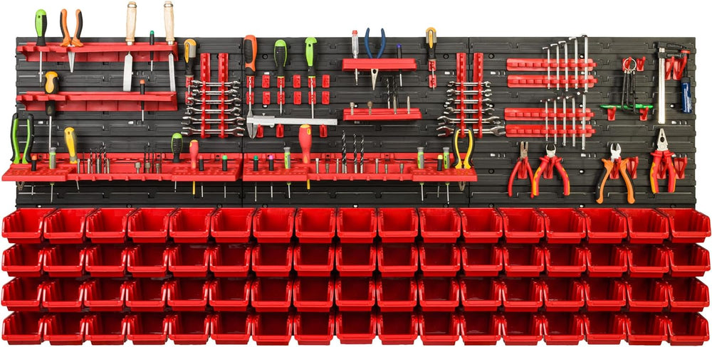 Lagersystem Werkstattregal | 172 x 78 cm | 78 stck. Box | Wandregal mit Werkzeughalterungen und Stap
