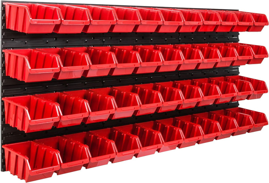 Lagersystem Werkstattregal | 172 x 78 cm | 44 stck. Box | Wandregal mit Stapelboxen - Wandplatten Ex