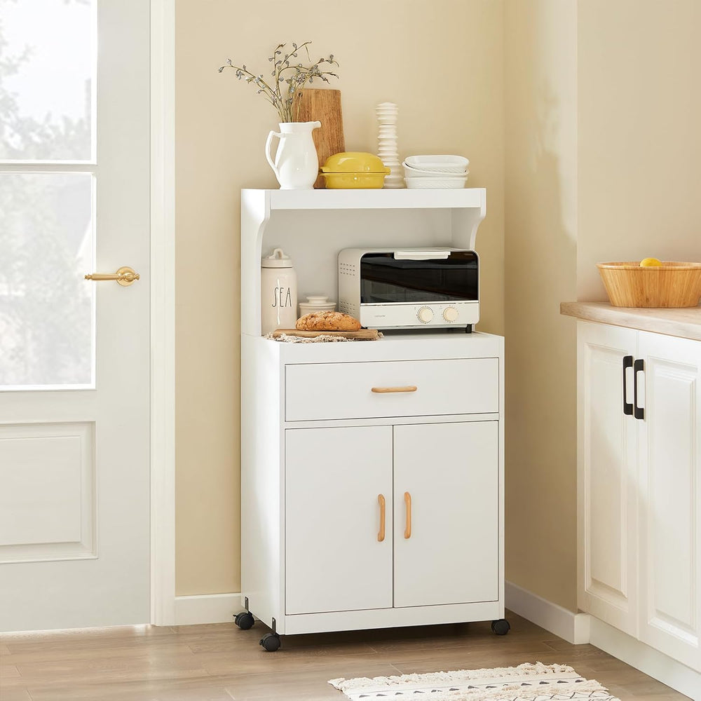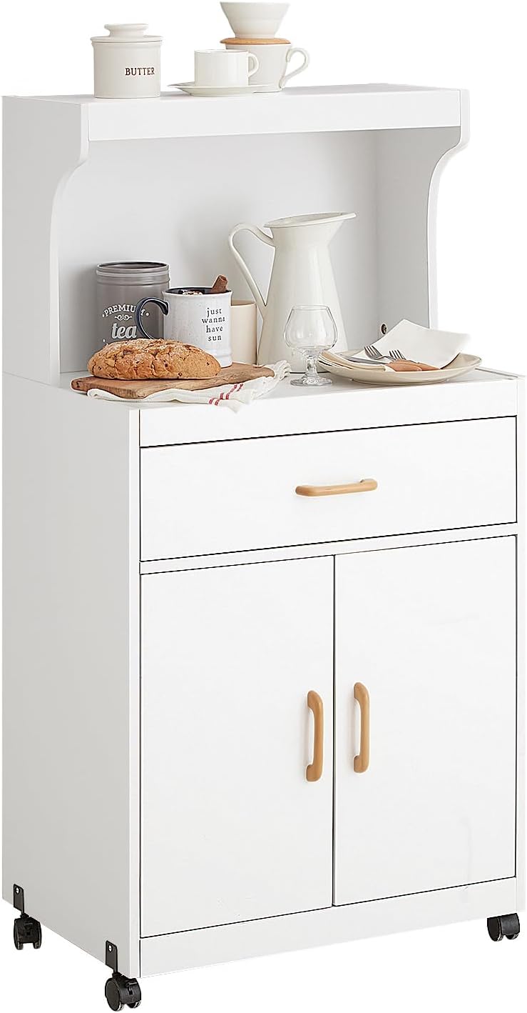 SoBuy® FSB12-W Mikrowellenschrank mit Rollen Küchenschrank Küchenwagen Getränkewagen mit 2 Ablagen,
