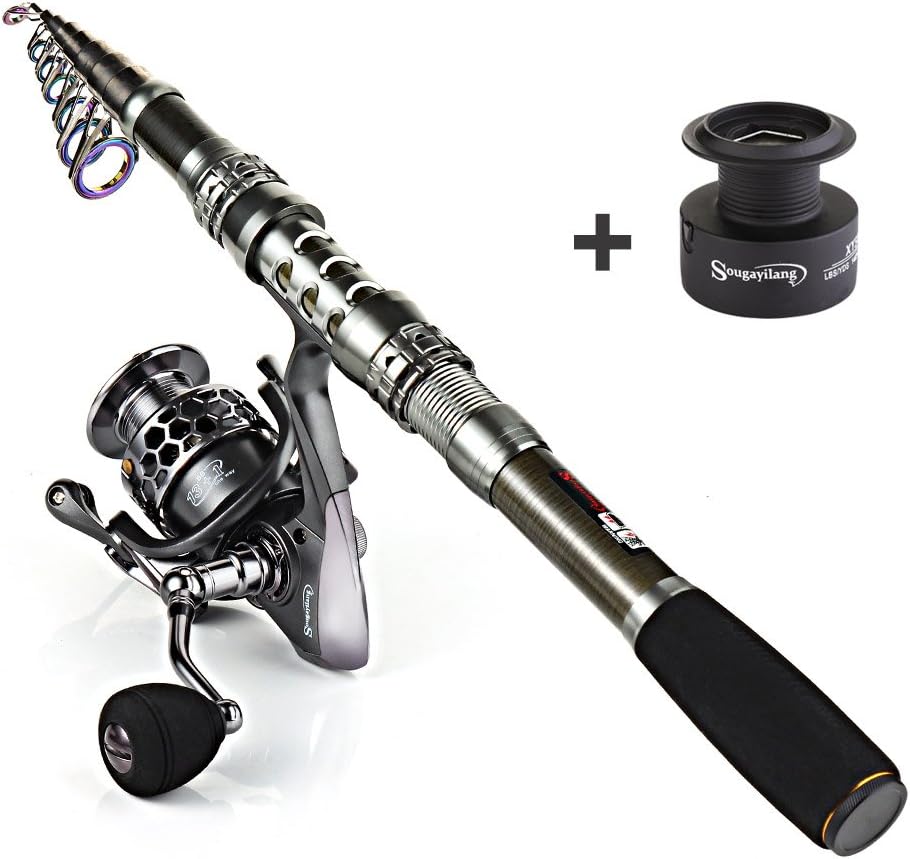Sougayilang, Teleskopangel / Angelrolle, Kohlefaser-Angelrute / Spinnrollen / Angelzubehör, ideal fü