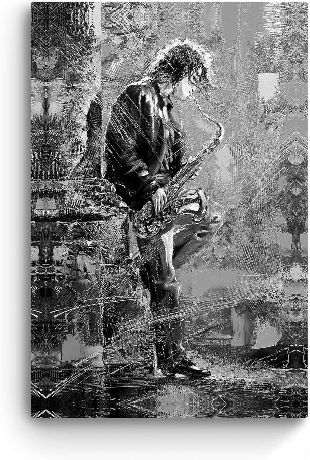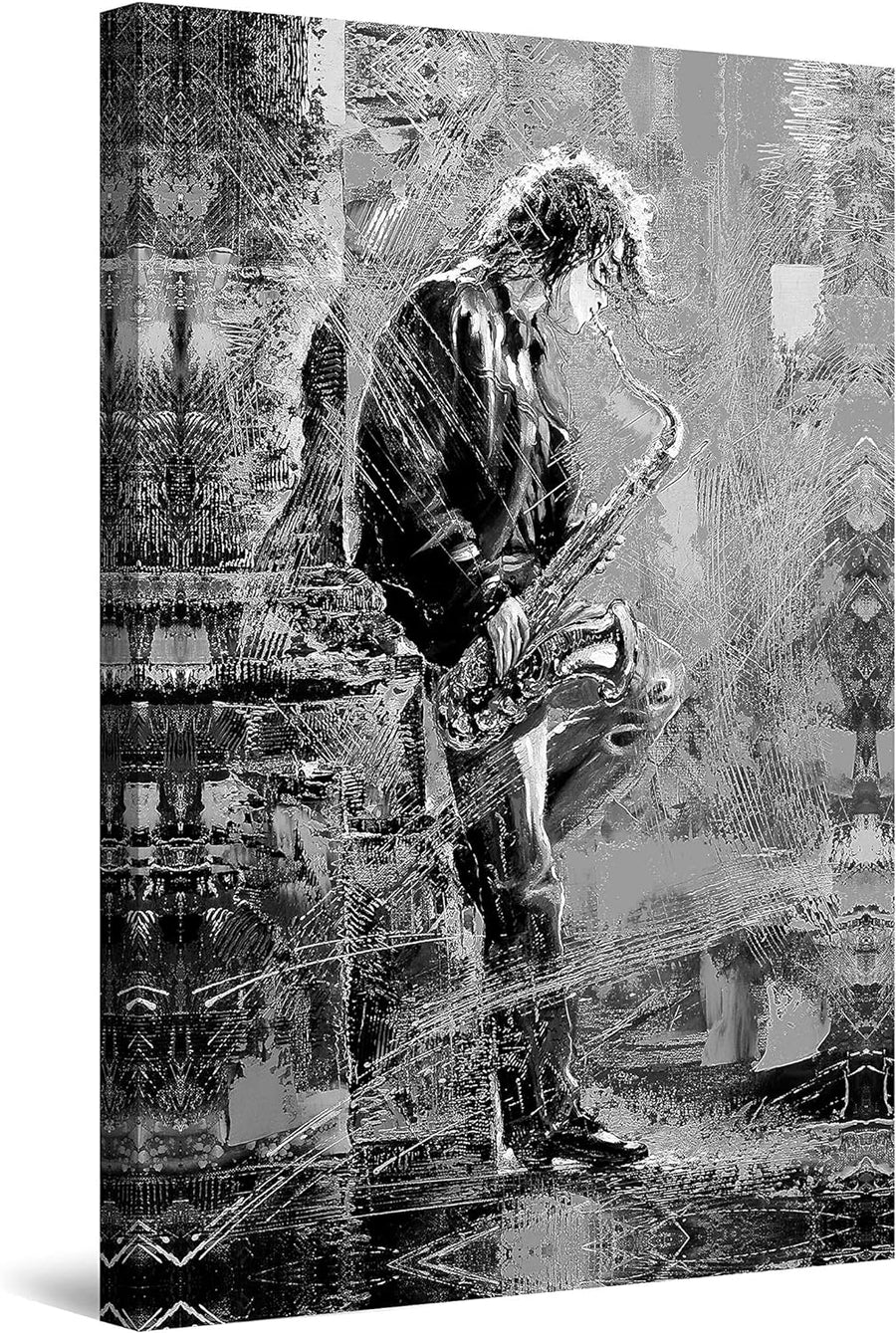 Startonight Leinwandbilder Schwarz und Weiss Junges Singen am Saxophon, Doppelansicht Überraschung M