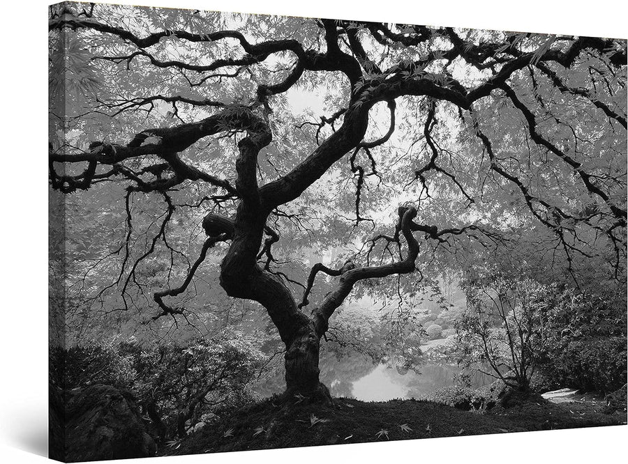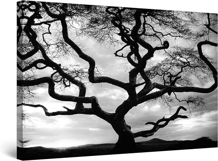 Startonight Leinwandbilder Schwarz und Weiss Sonnenuntergang Hinter dem Baum, Doppelansicht Überrasc