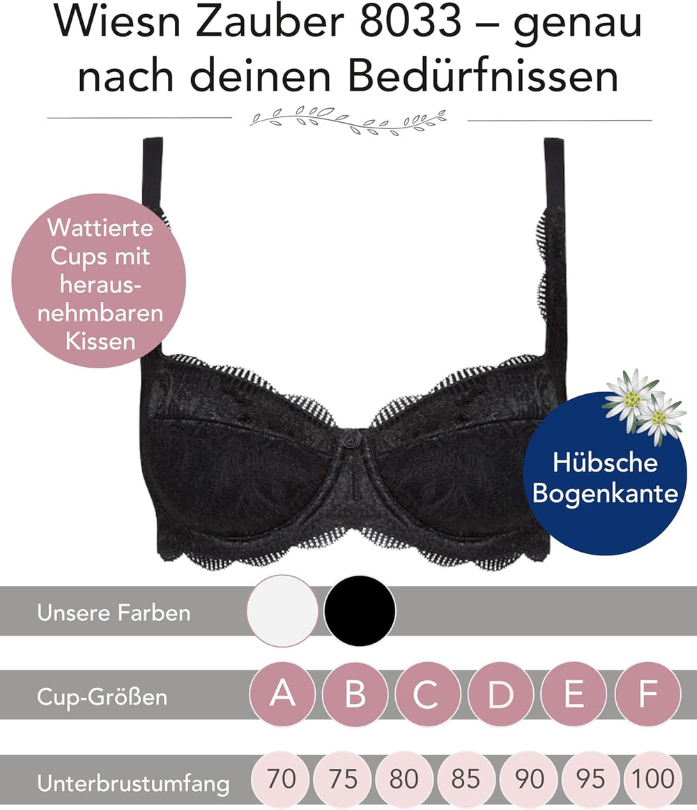 SUSA Wiesn-Zauber Dirndl BH I Bügel-Halbschalen BH mit floraler Spitze I Damen BH für ein atemberaub