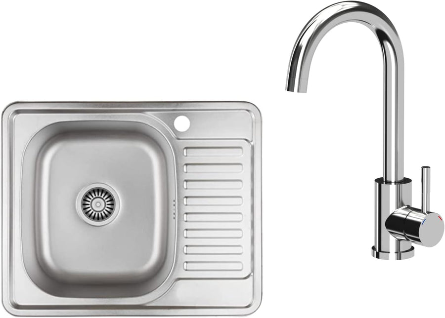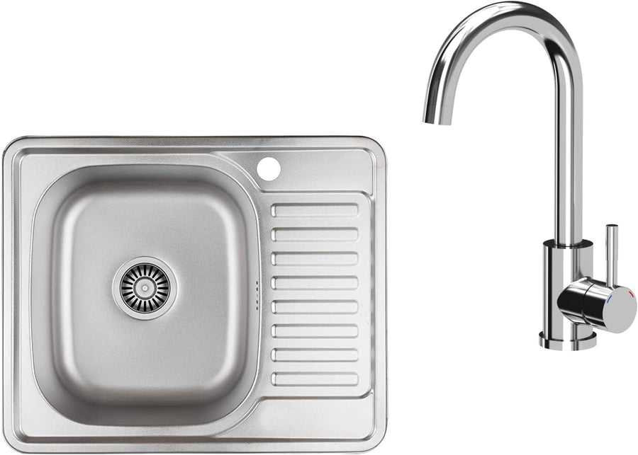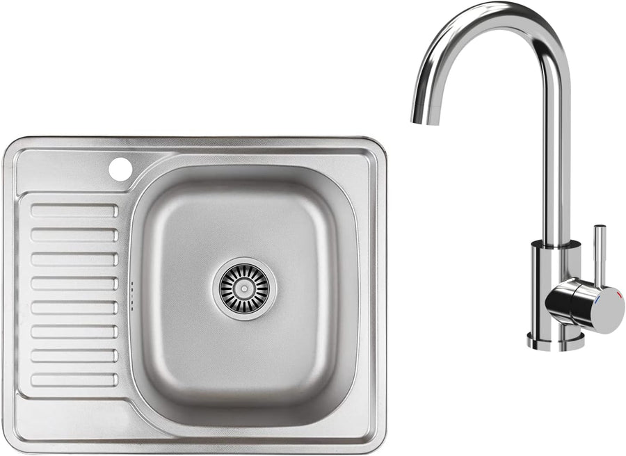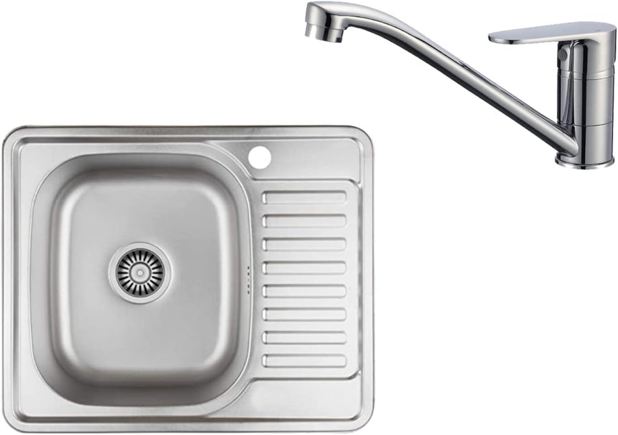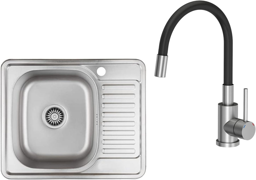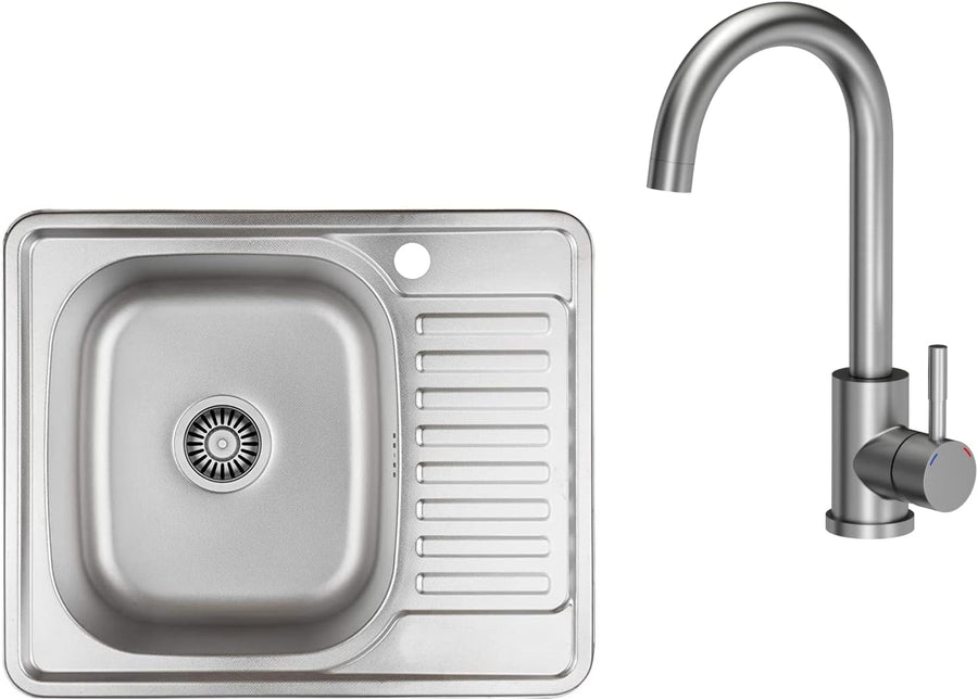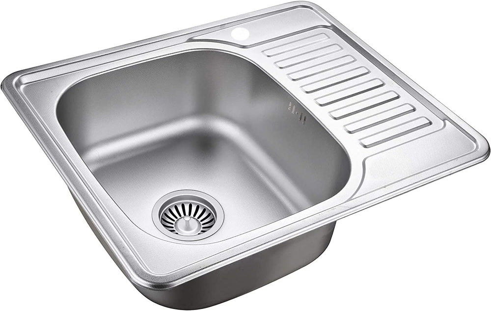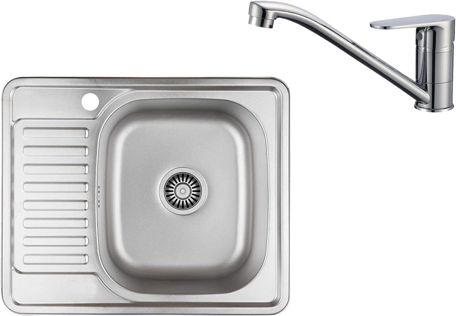 VBChome Einbauspüle mit Armatur 58x48 Satinstruktur Rechts Edelstahl Küchenspüle Spüle Ablagefläche
