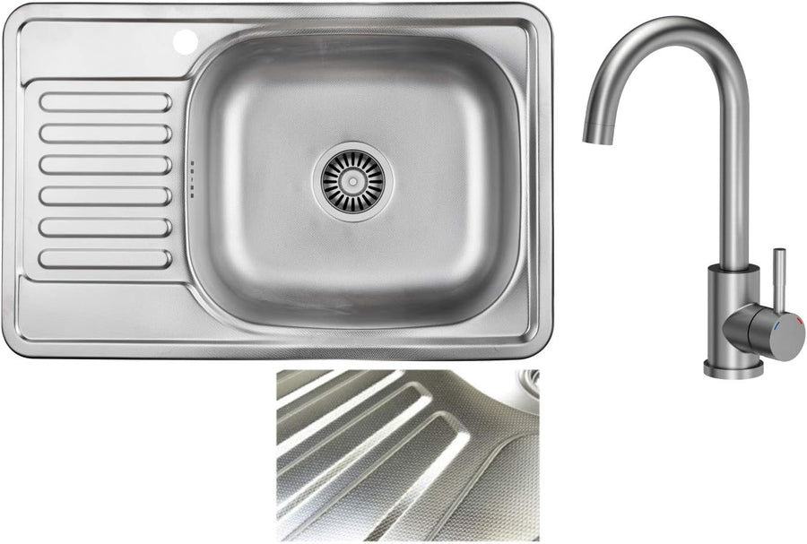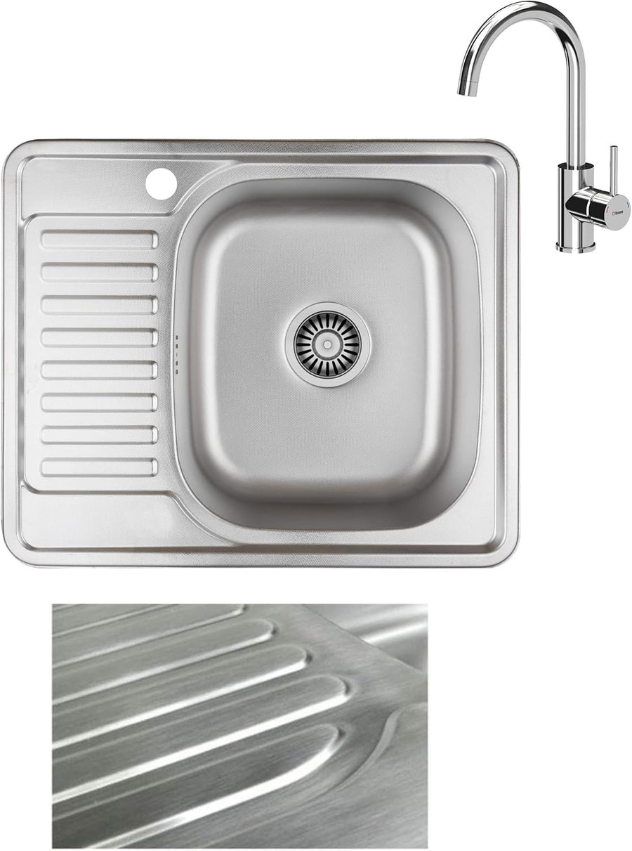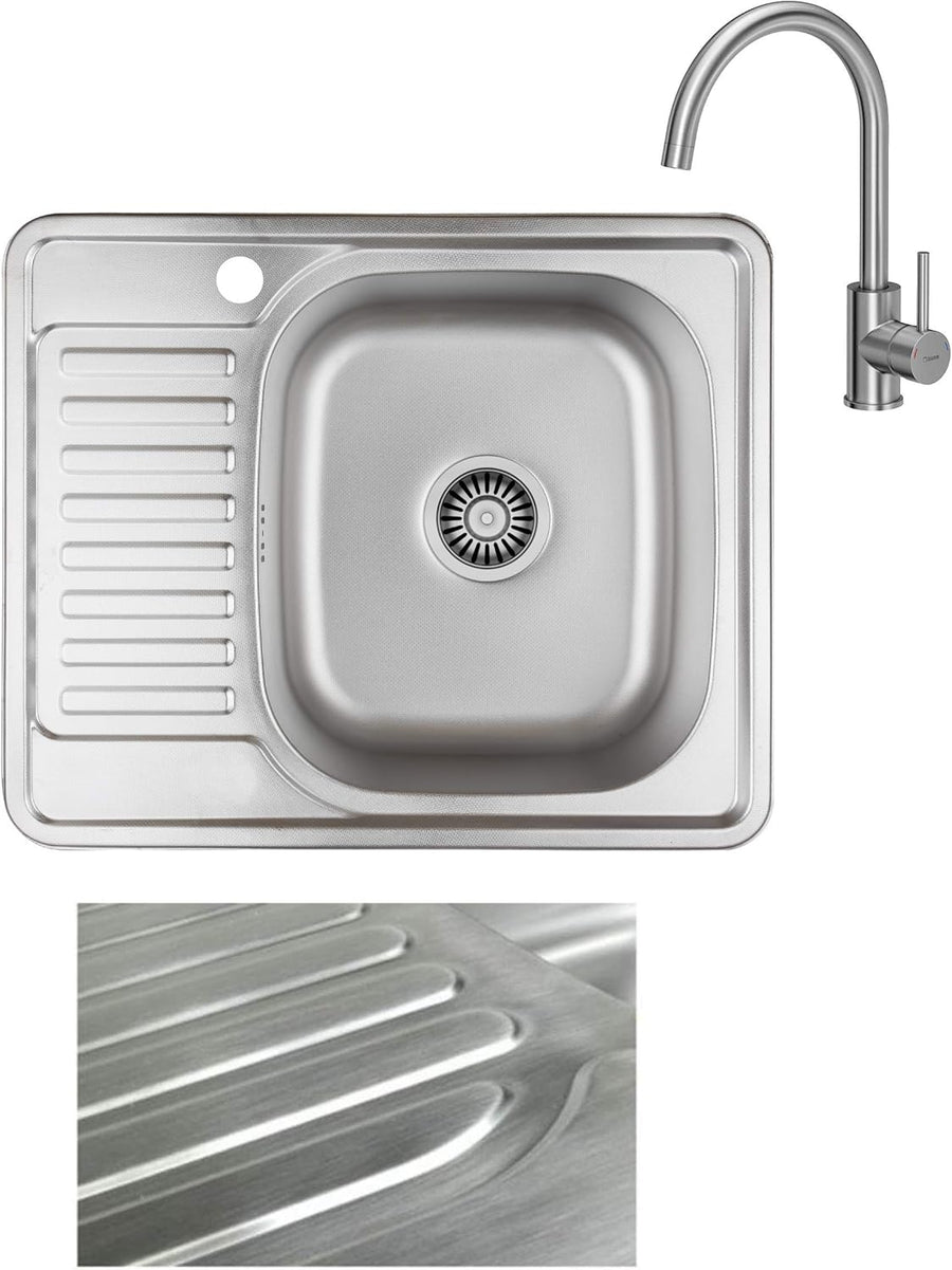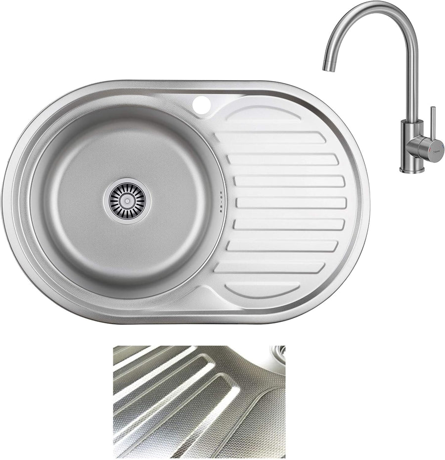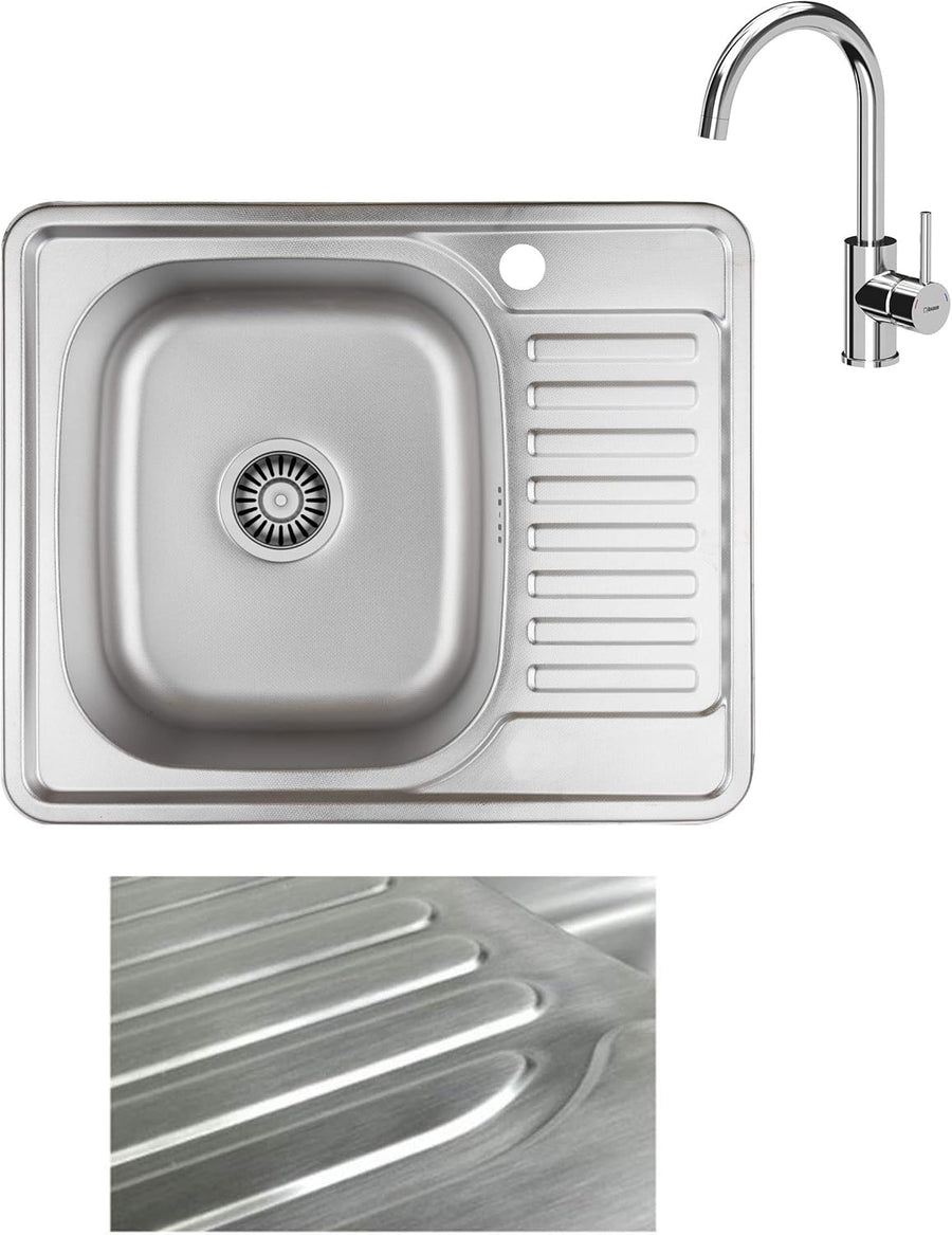 VBChome Einbauspüle mit Armatur 66x42 Satinstruktur Edelstahl Küchenspüle Spüle Ablagefläche Abtropf