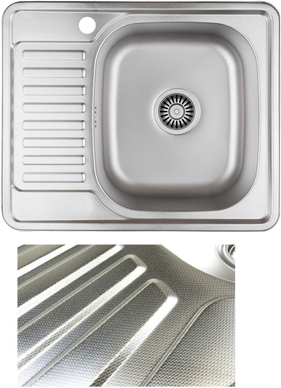 VBChome Einbauspüle58x48 Leinenstruktur ab 45er Unterschrank Edelstahl Küchenspüle Spüle Ablagefläch