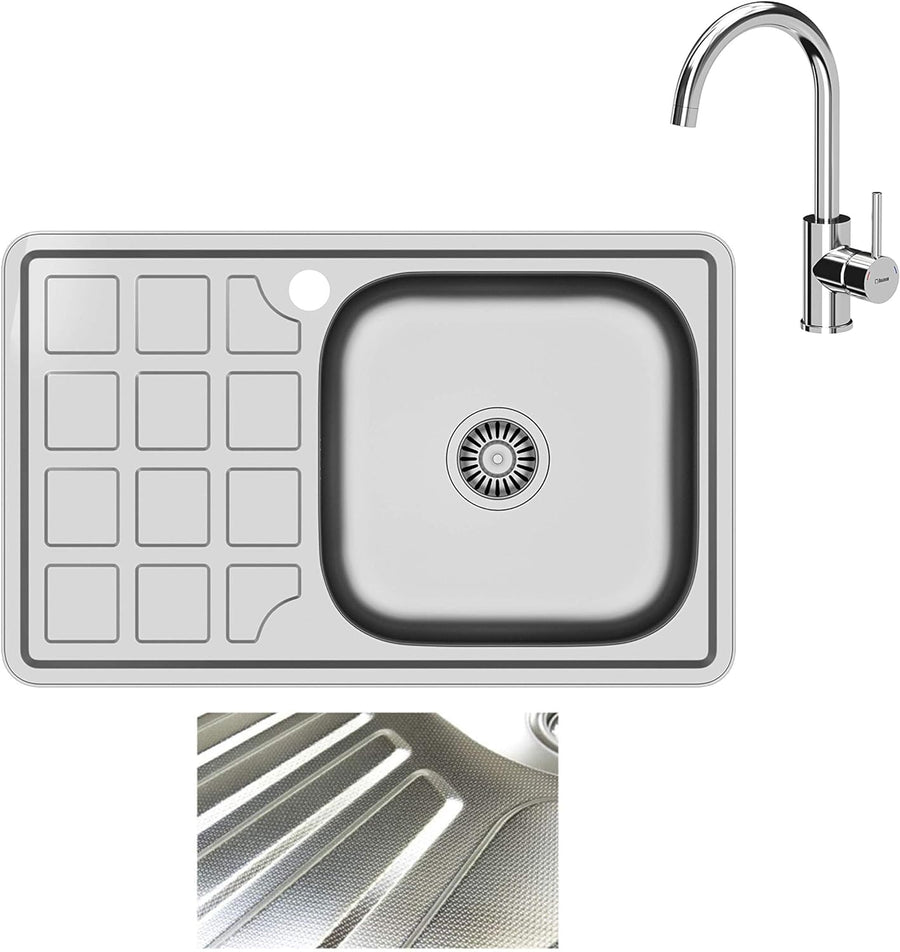 VBChome Einbauspüle mit Armatur 77x55 Satinstruktur Edelstahl Küchenspüle Spüle Ablagefläche Links A