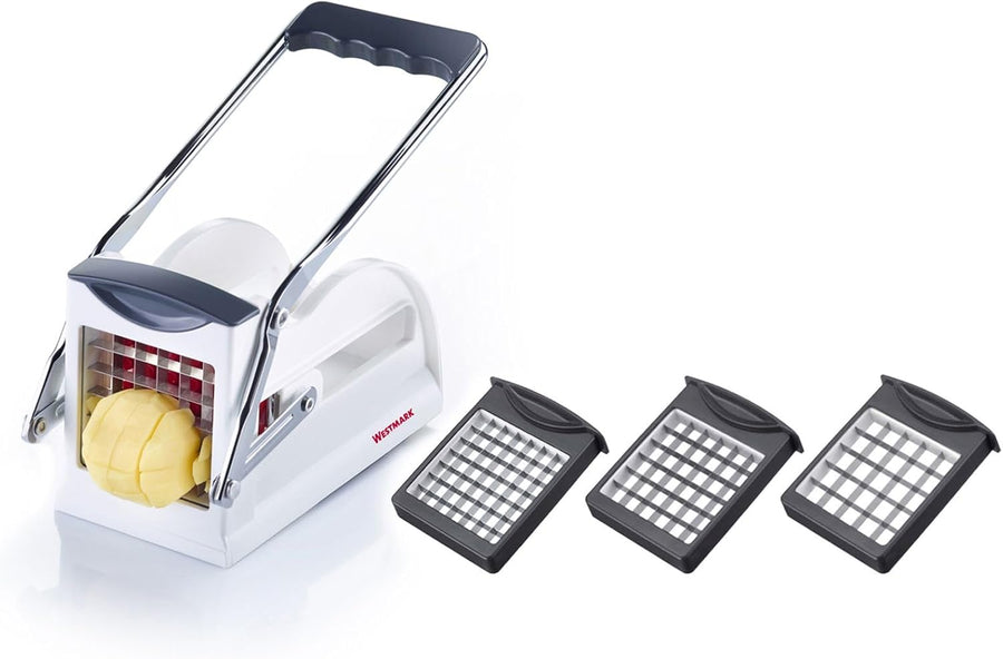 Westmark Pommes-frites Schneider und Gemüse-/Obststiftler mit drei Edelstahl-Schneideinsätzen und St