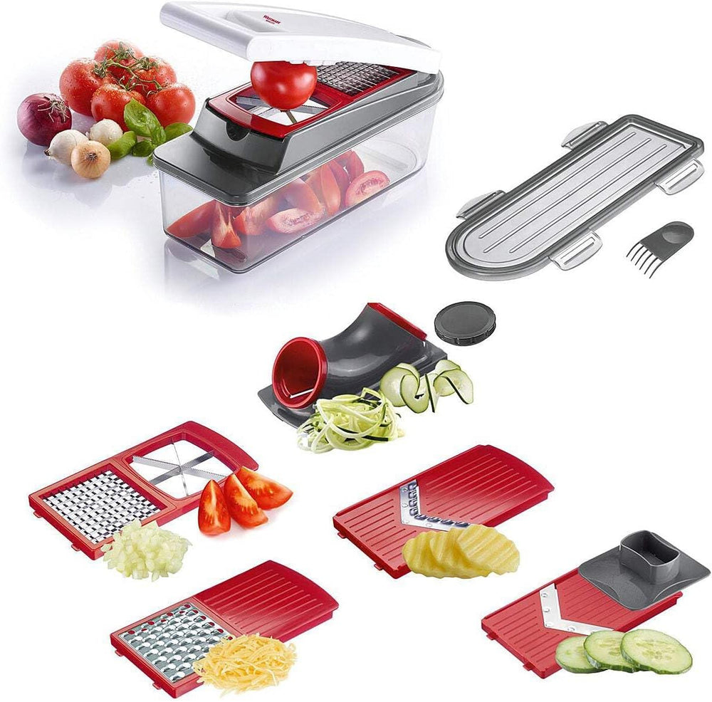 Westmark Multischneider/Gemüseschneider/-würfler mit Deckel, Auffangbehälter und 5 Schneideinsätzen,