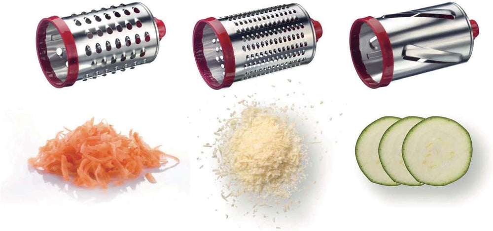 Westmark Reibemaschine mit 4 Schneidtrommeln, Trommelreibe/-hobel, Höhe: 28 cm, Kunststoff/Rostfreie