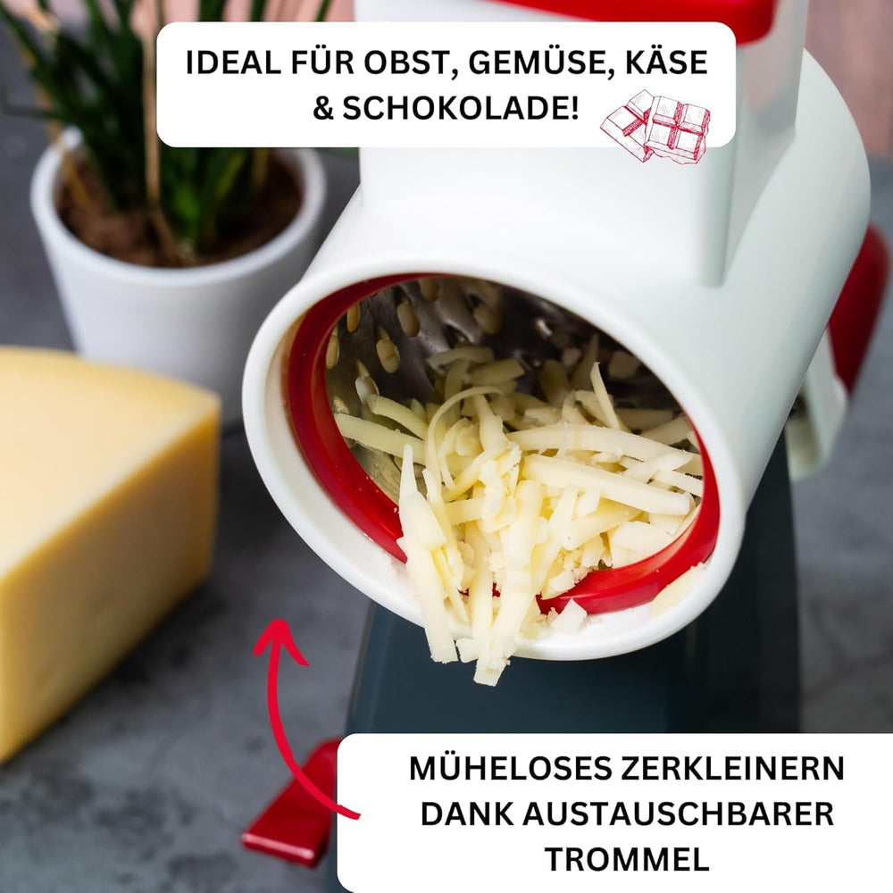 Westmark Reibemaschine mit 3 Schneidtrommeln, Trommelreibe/-hobel, Grosser Saugfuss, Höhe: 26,5 cm,