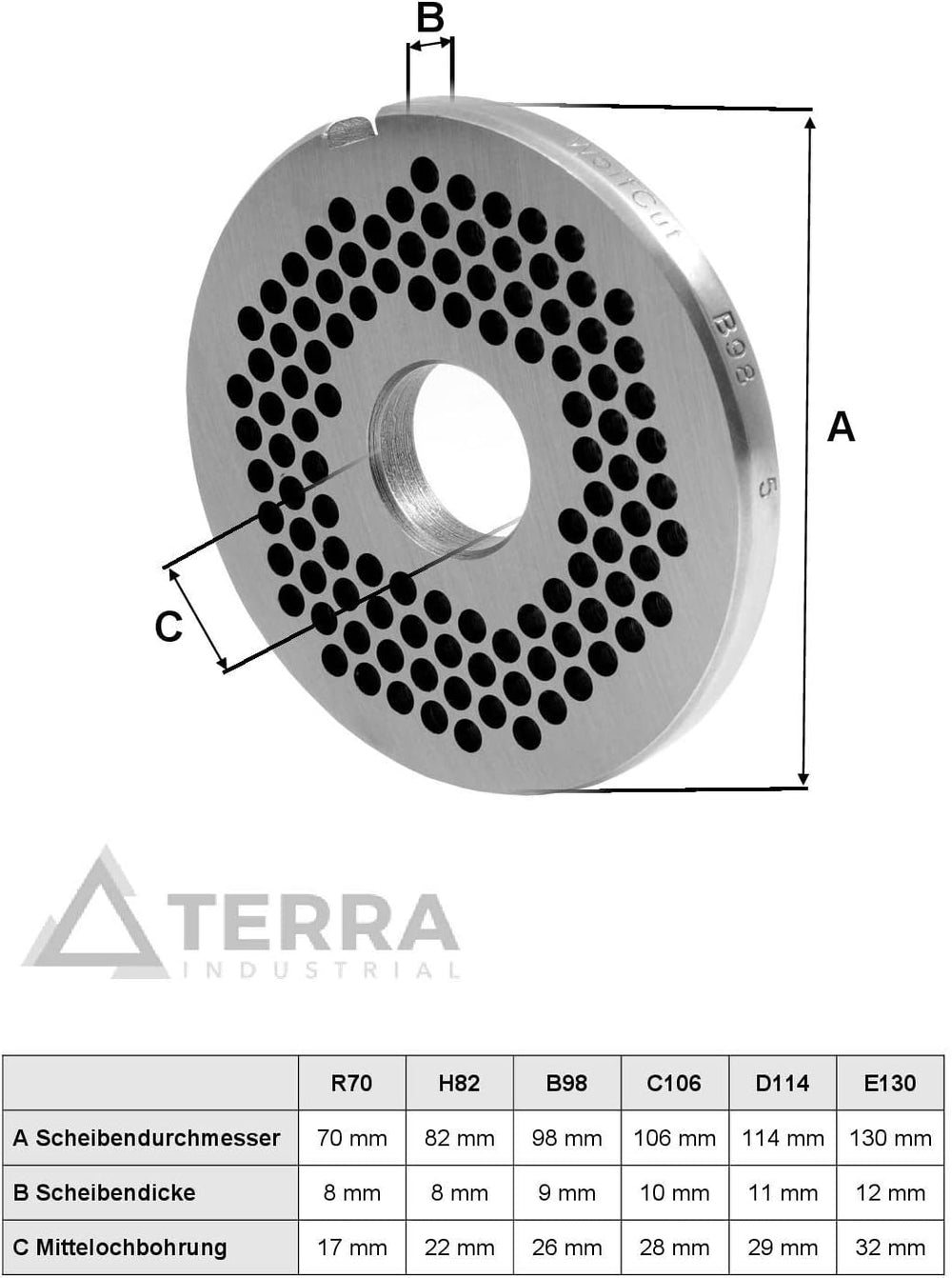 WOLFCUT R70 Fleischwolfscheibe mit 2,0 mm Bohrung Ersatz für/kompatibel mit alle gängigen Fleischwol
