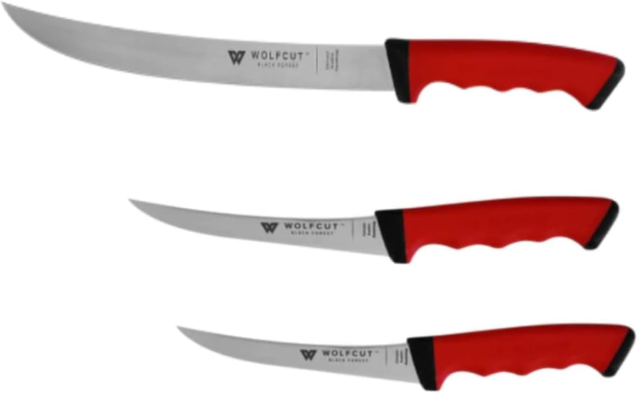 Wolfcut SoftGrip Serie - Metzgermesser-Set 3-tlg. Zerlegemesser 26 cm, Ausbeinmesser 13 cm, Ausbeinm